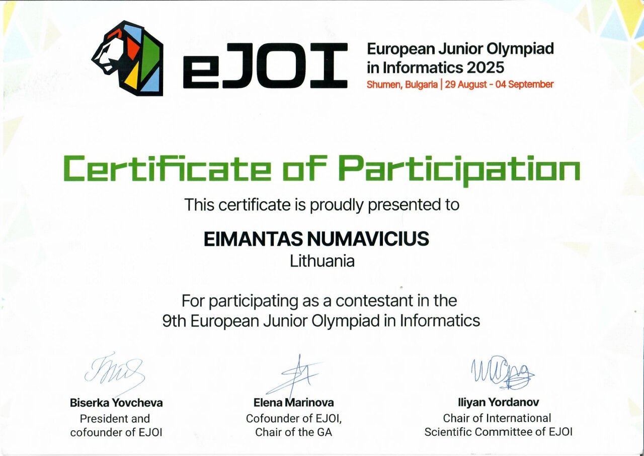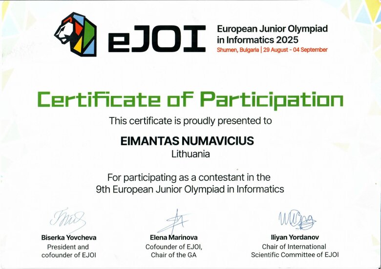 Mūsų gimnazijos mokinys atstovavo Lietuvai EJOI, Bulgarijoje