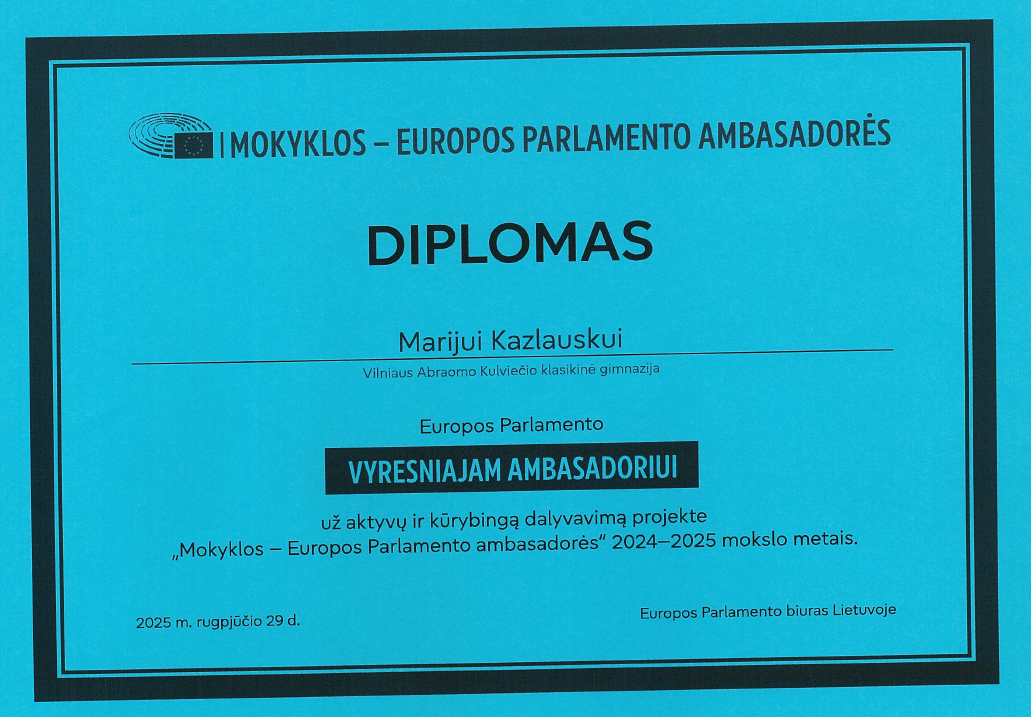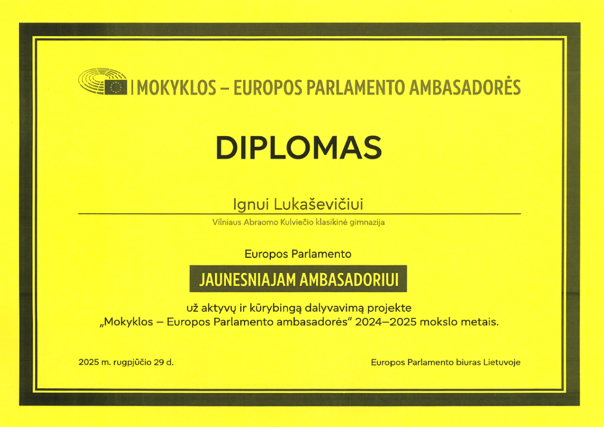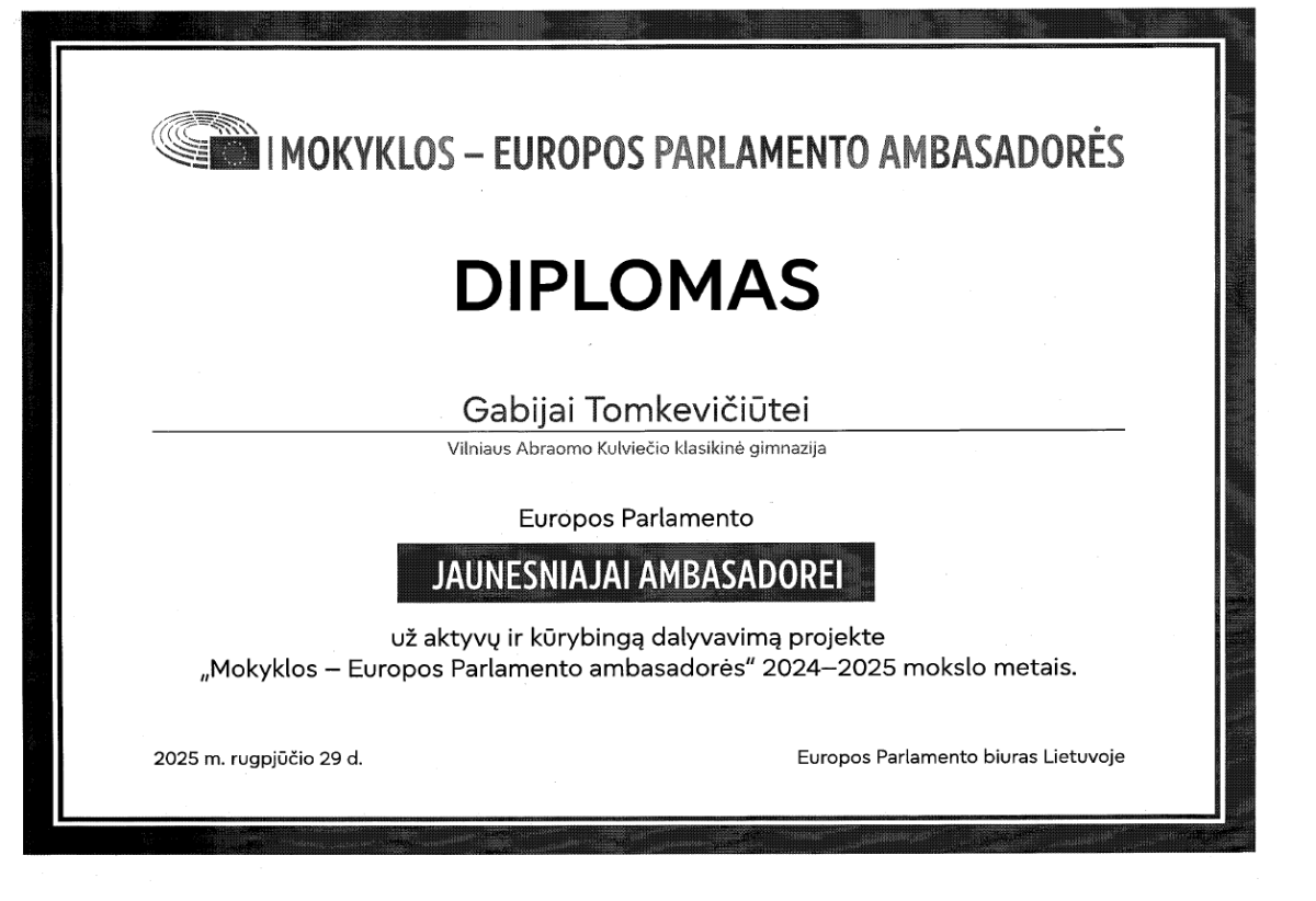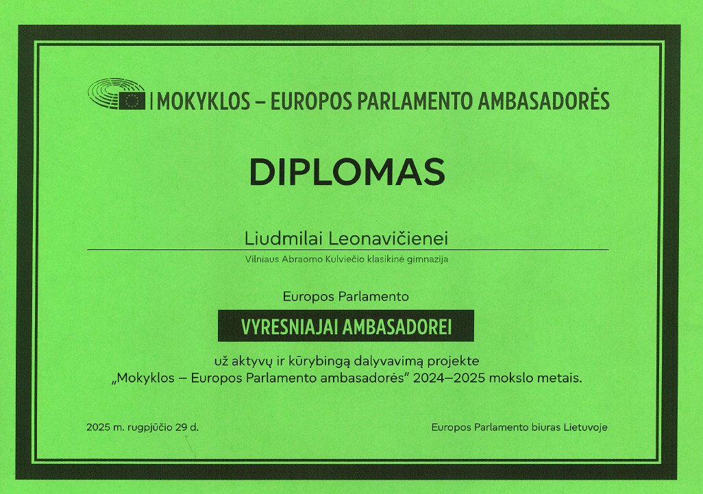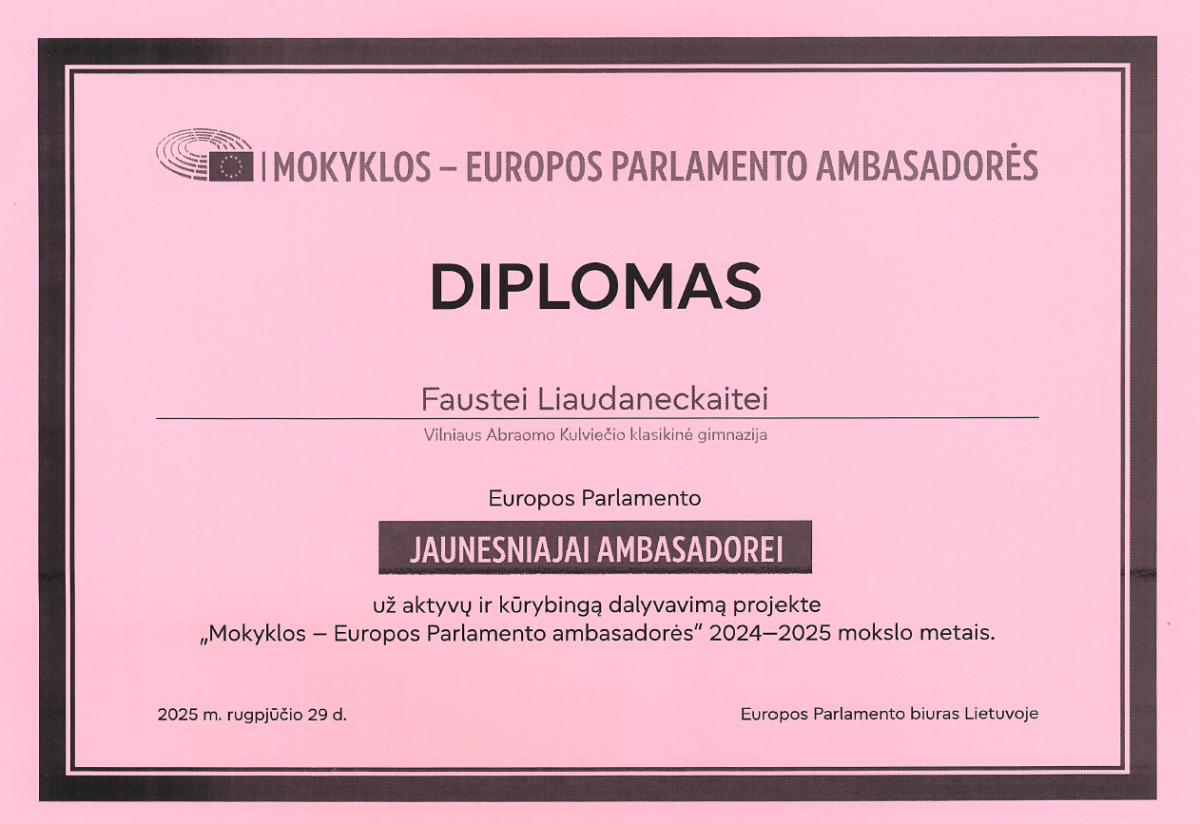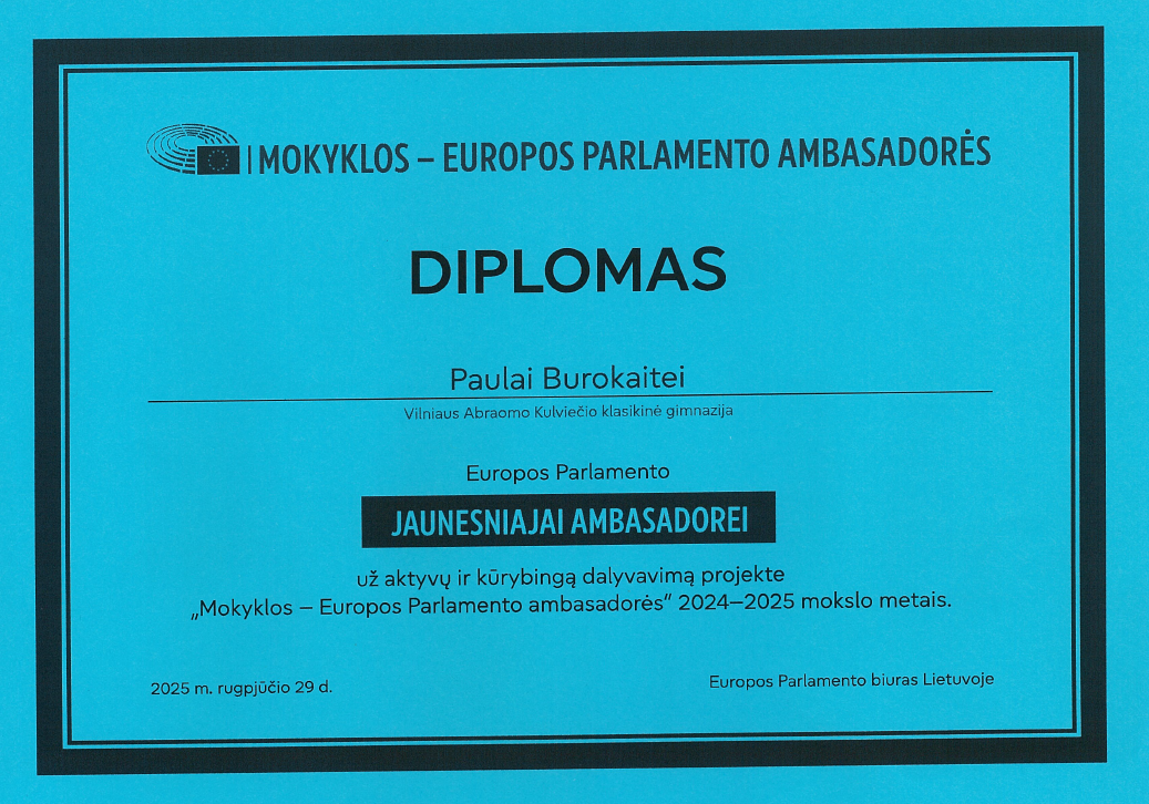 Diplomai EP vyresniesiems ir jaunesniesiems ambasadoriams. #MEPALietuva