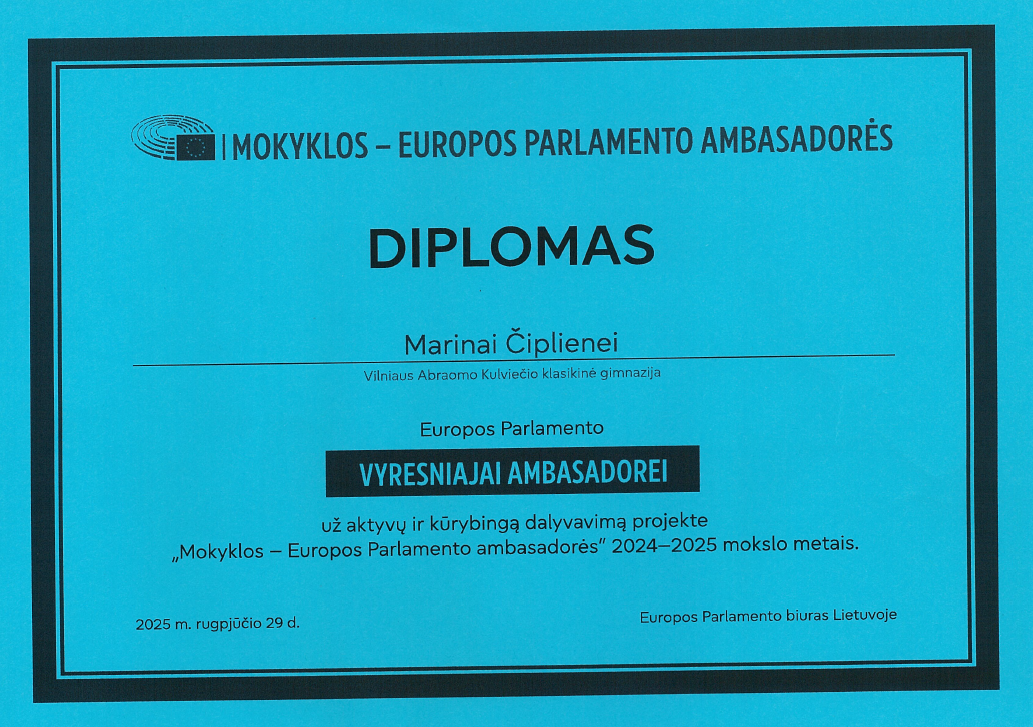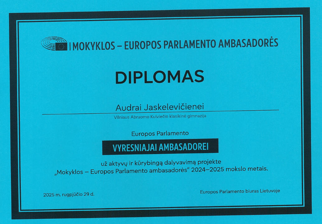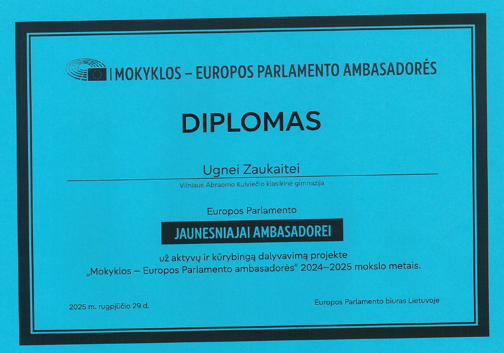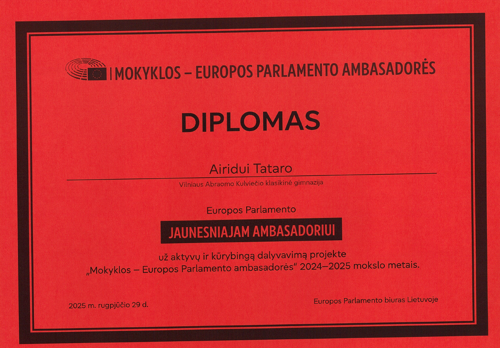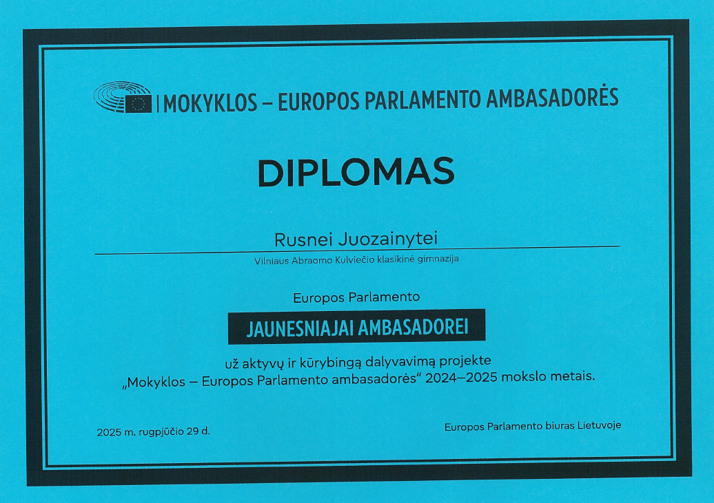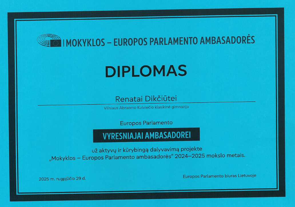 Diplomai EP vyresniesiems ir jaunesniesiems ambasadoriams. #MEPALietuva