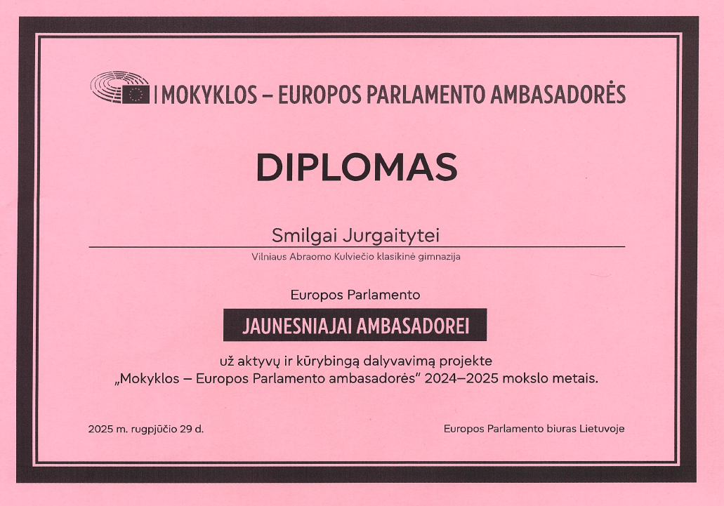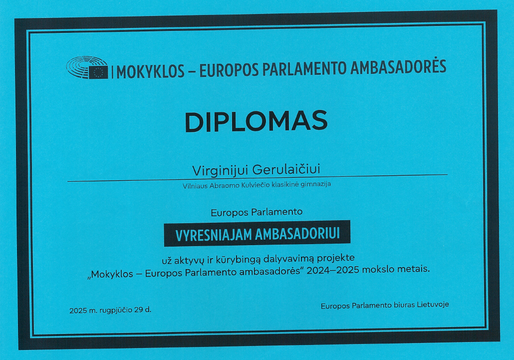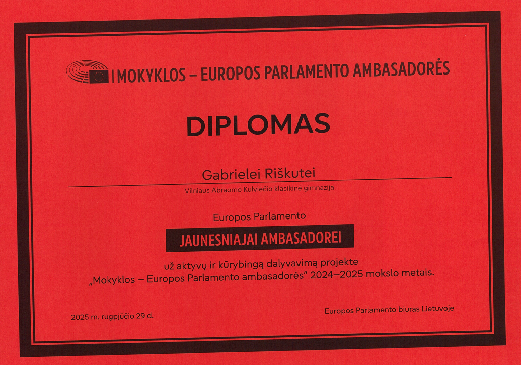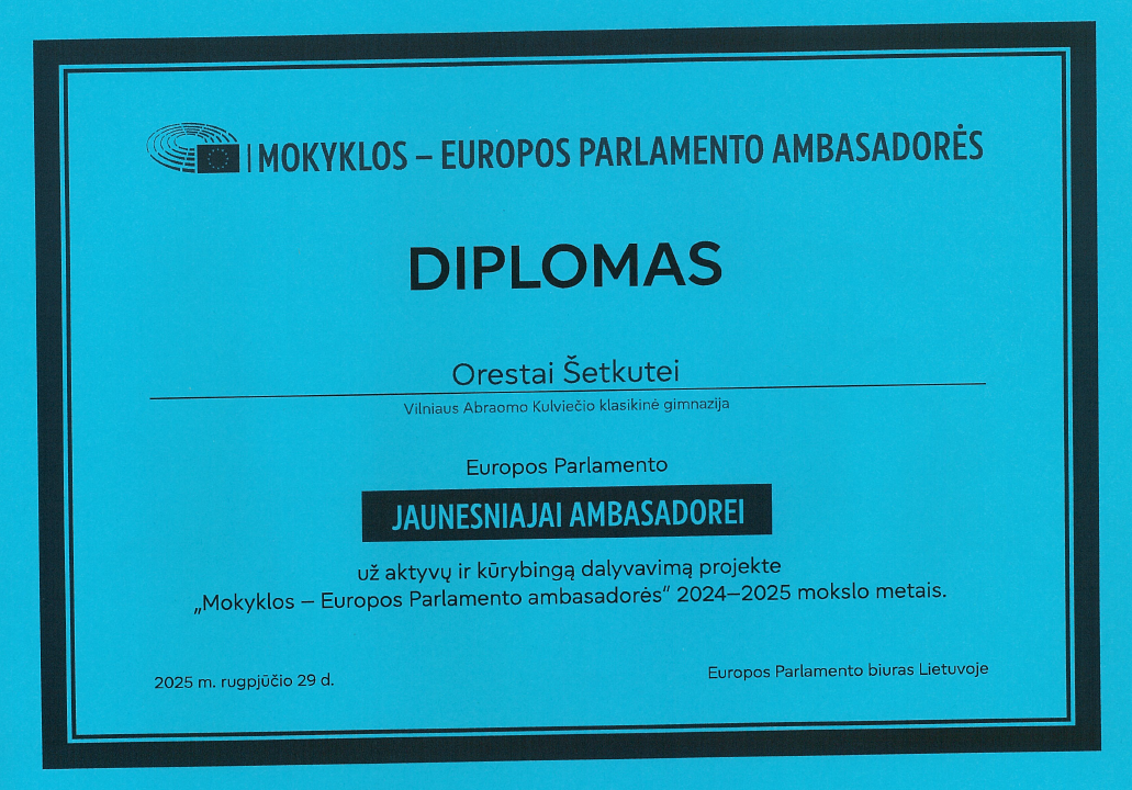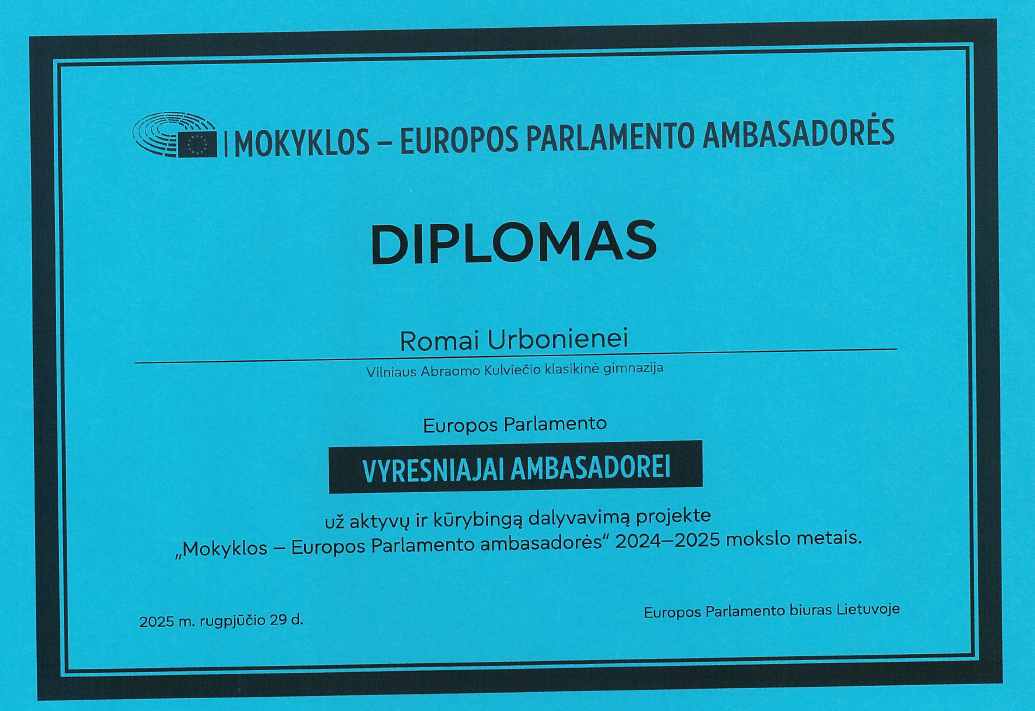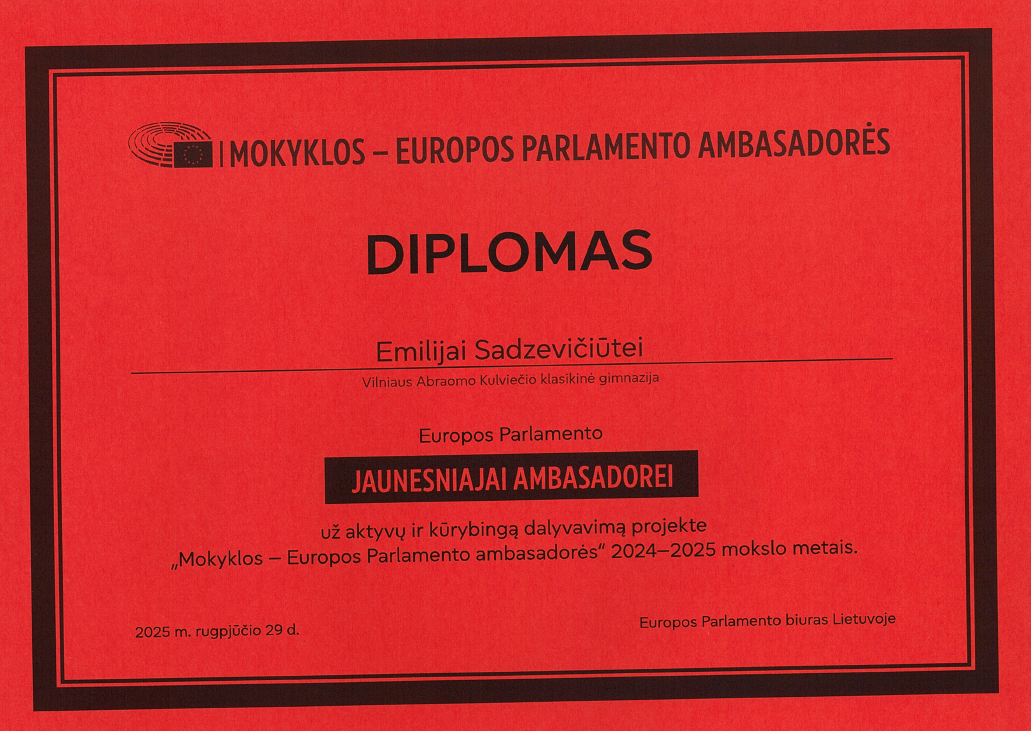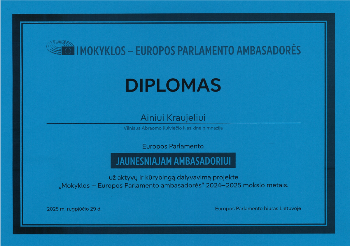Diplomai EP vyresniesiems ir jaunesniesiems ambasadoriams. #MEPALietuva