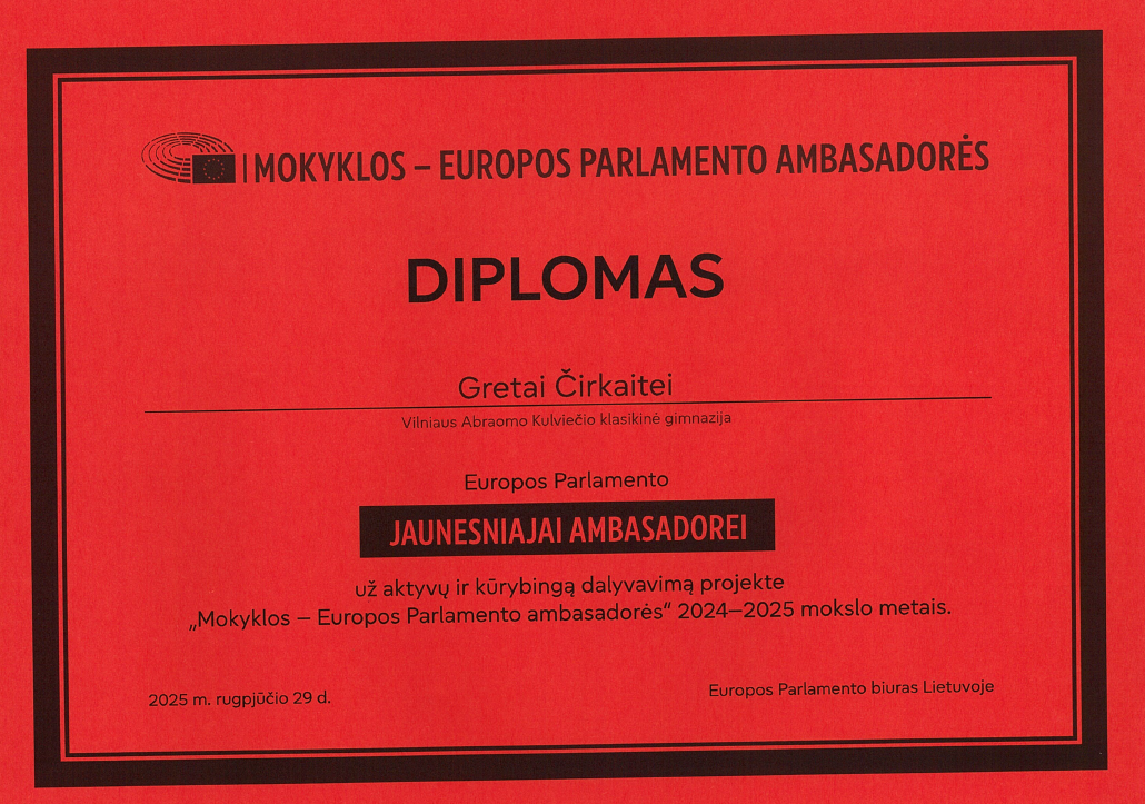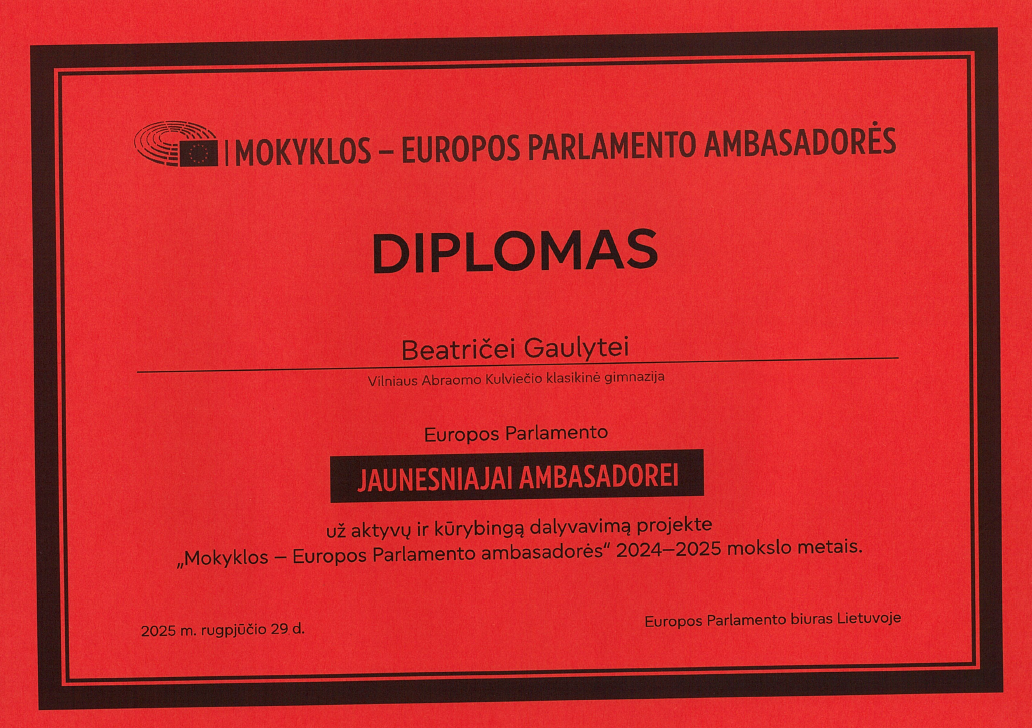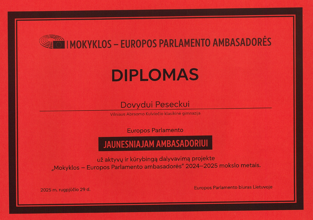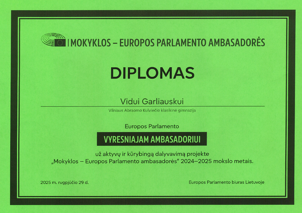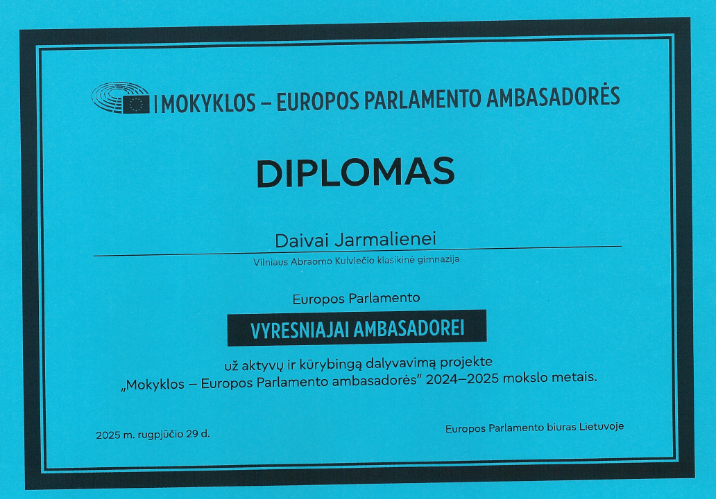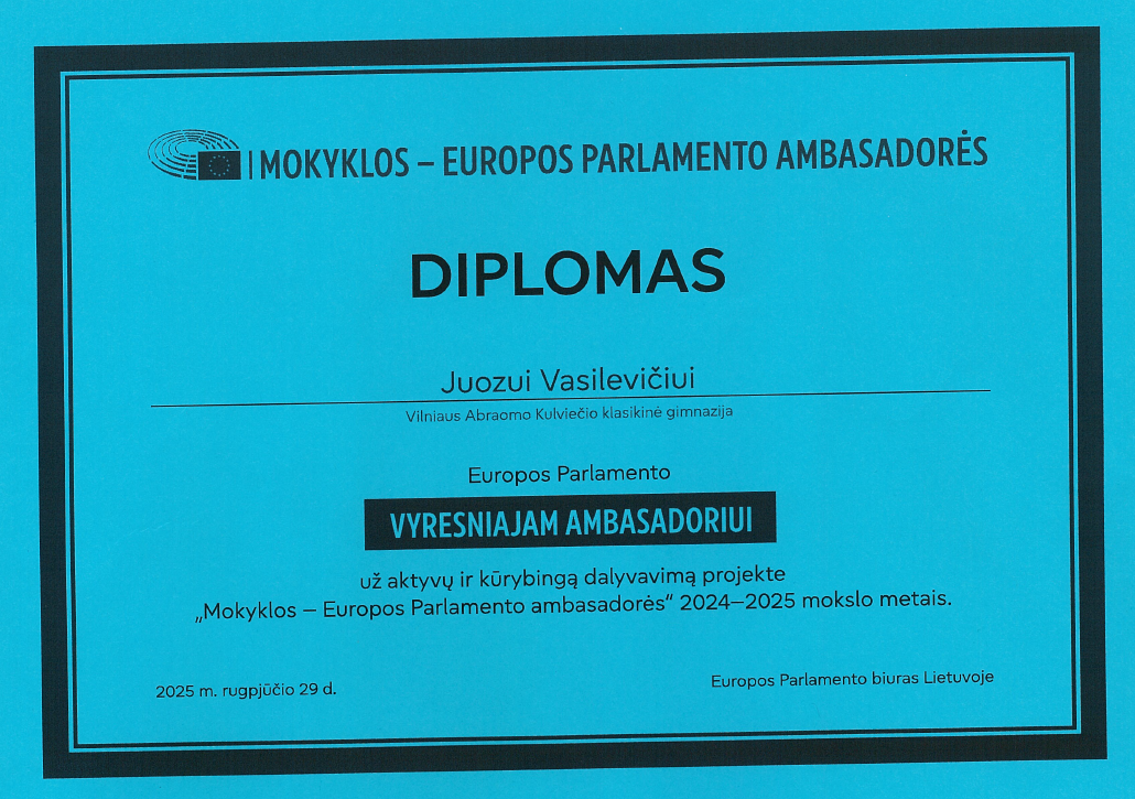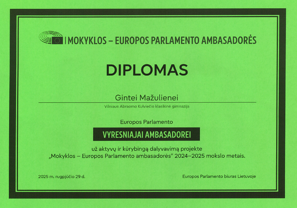Diplomai EP vyresniesiems ir jaunesniesiems ambasadoriams. #MEPALietuva