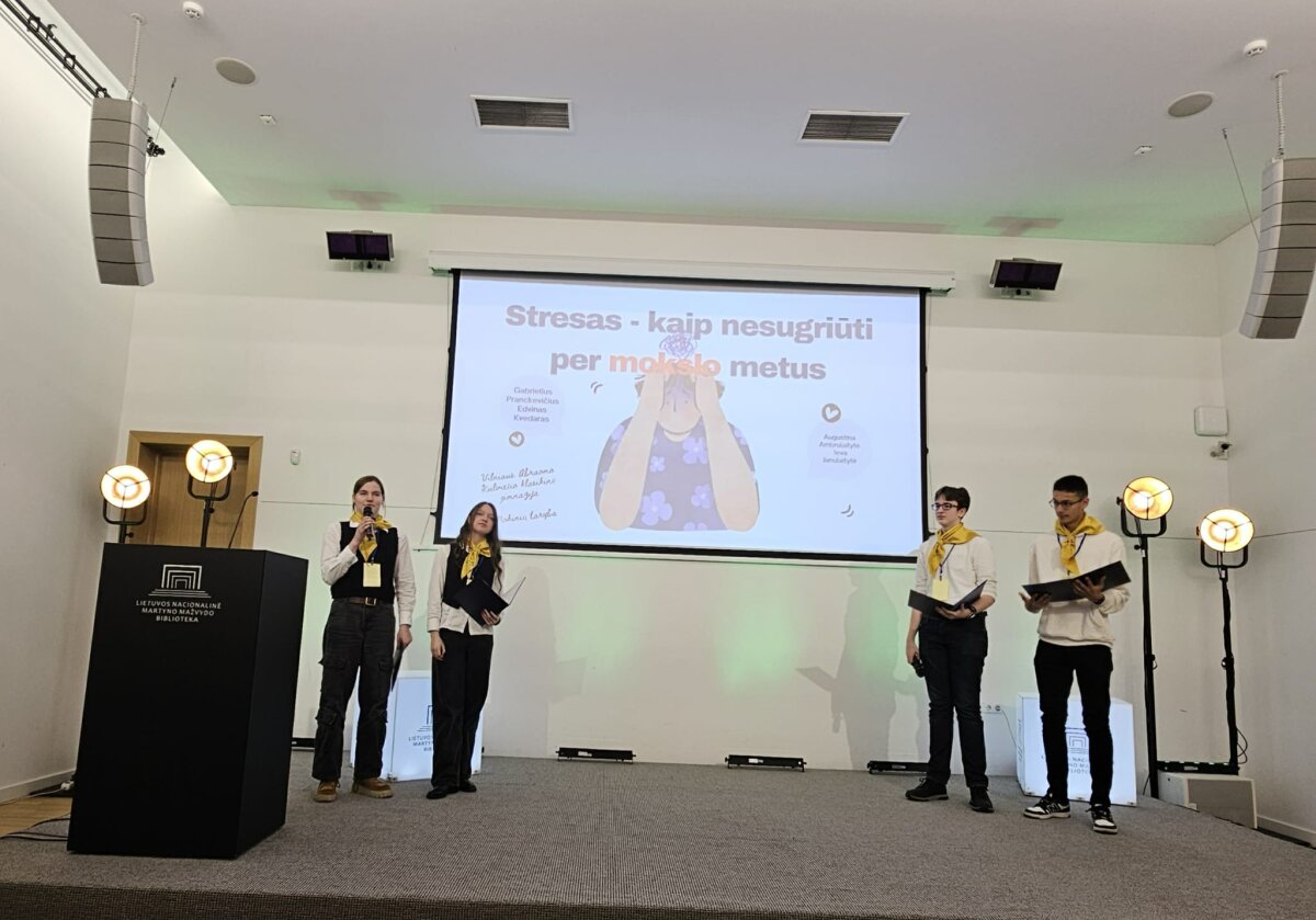 Mūsų komanda pristatė projektą, kuriame akcentuojama, kad streso mažinimas gali būti veiksmingas net ir be nuolatinio buvimo prie ekranų. Streso ir sveikatos klausimai, ypač emocinė gerovė, aktualūs visoje Europoje. Tai tiesiogiai susiję su Europos Parlamento tikslais, skatinančiais stiprinti psichologinį atsparumą, kurti bendruomenišką gimnazijos aplinką ir mažinti priklausomybę nuo skaitmeninių įrenginių.