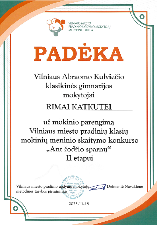 Sveikiname meninio skaitymo konkurso ANT ŽODŽIO SPARNŲ nugalėtoją