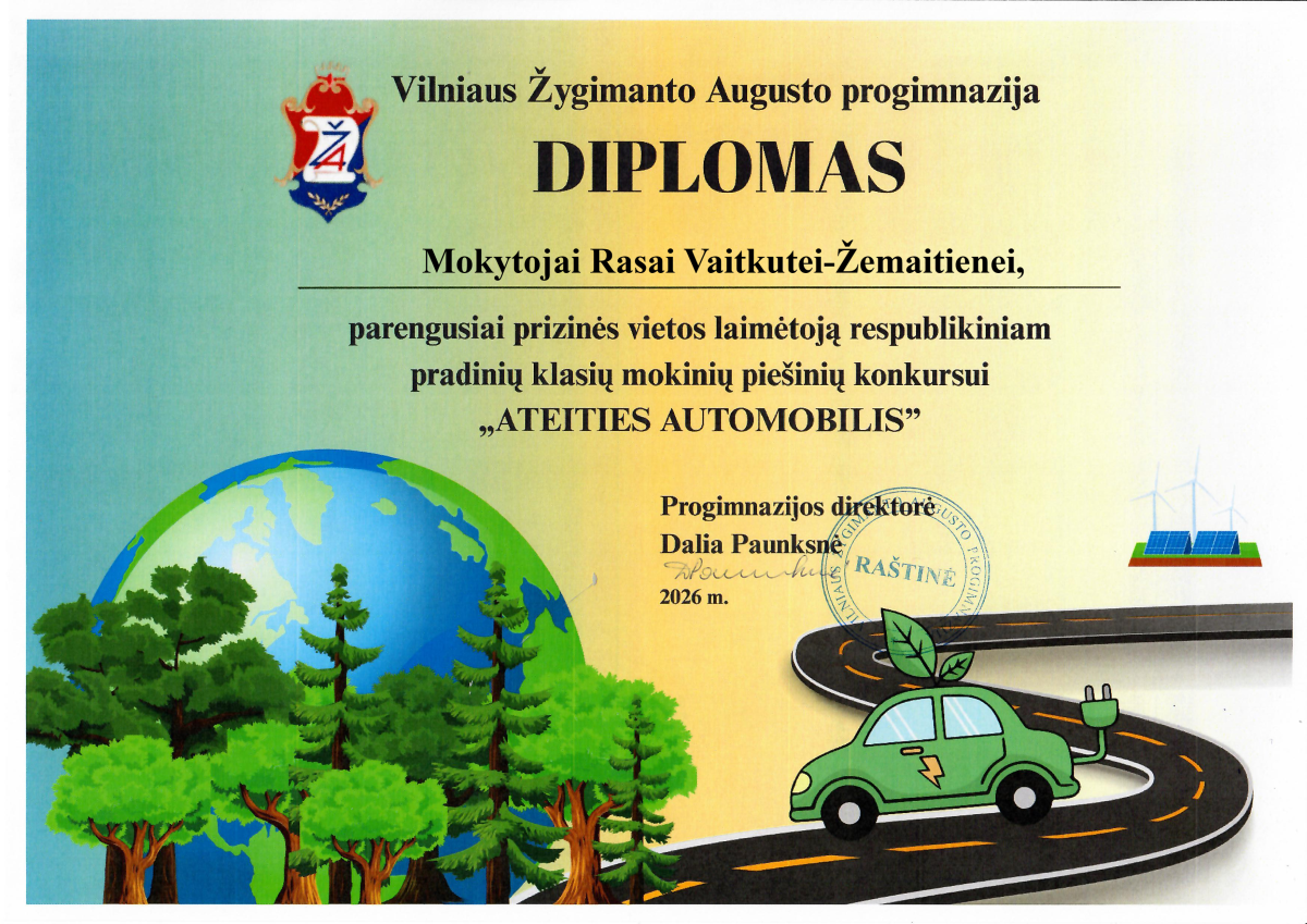 2026 m. vasario 9 d. – kovo 15 d. Žygimanto Augusto progimnazijoje vyko respublikinis pradinių klasių mokinių piešinių konkursas „Ateities automobilis“, skirtas Pasaulinei Žemės dienai paminėti. Konkurso organizatoriai sulaukė 145 darbų iš 65 Lietuvos mokyklų, mokinius ruošė 84 pedagogai. Jaunieji kūrėjai, pasitelkdami įvairias meninės raiškos technikas, vaizdavo ateities automobilį, atskleisdami savo kūrybiškumą, išradingumą bei požiūrį į tvarią, aplinkai draugišką ateitį.