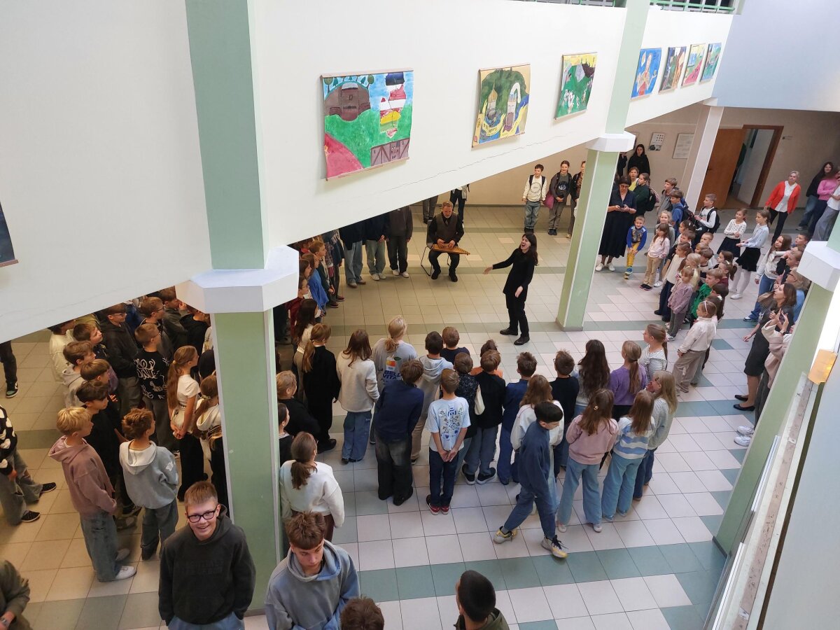 25-tąjį kartą minimai Europos kalbų dienai Europos Komisija kreipėsi į dirbtinį intelektą ir paprašė sukurti iškilmingą giesmę „Europos balsai“. Gimnazijos mokiniai ne tik išmoko ją giedoti anglų kalba, bet nusprendė ir patys parodyti kūrybingumą: kartu su savo kalbų mokytojais anglišką tekstą jie išvertė į vokiečių, prancūzų, rusų ir net lotynų kalbas (neatsisakė ir DI pagalbos), taigi gimnazijos kiemelis per ilgąją pertrauką aidėjo daugiabalsiu choru.