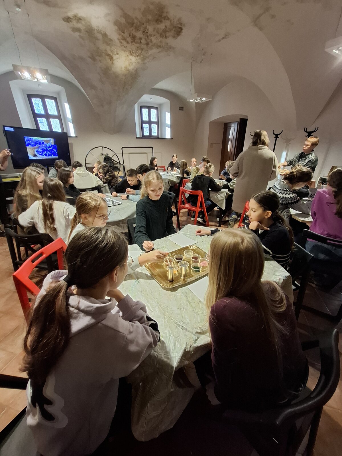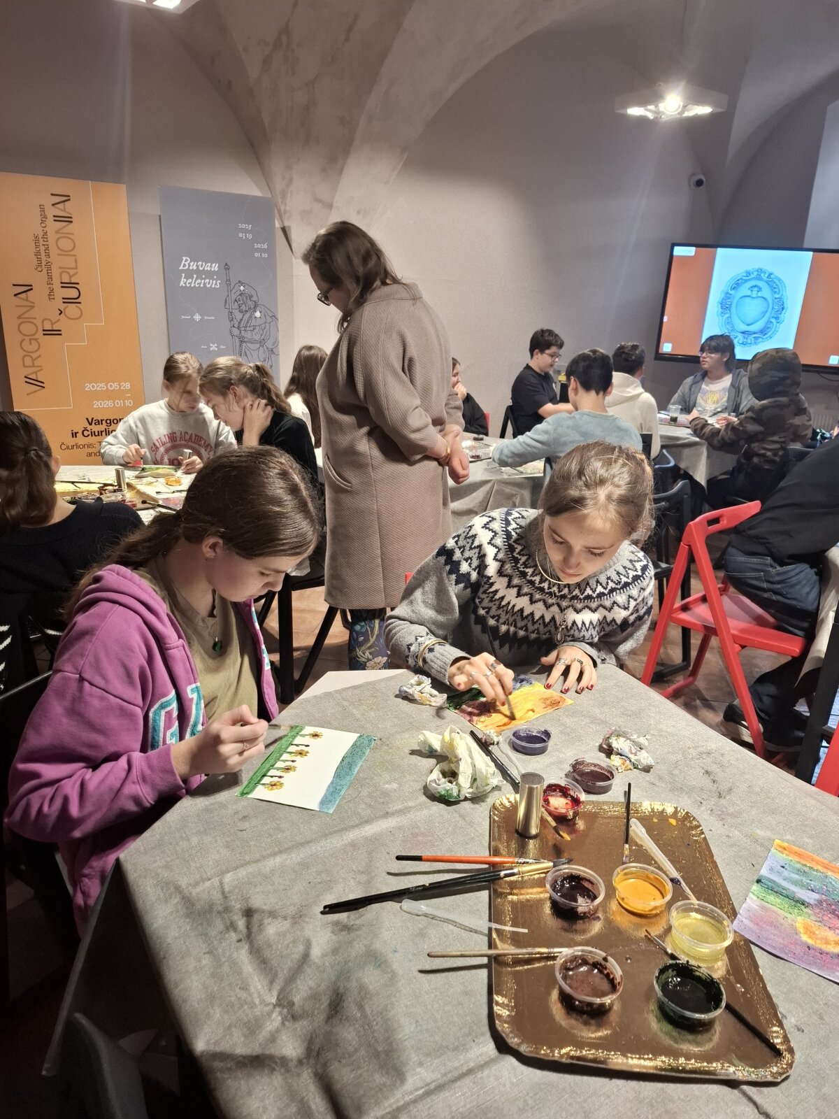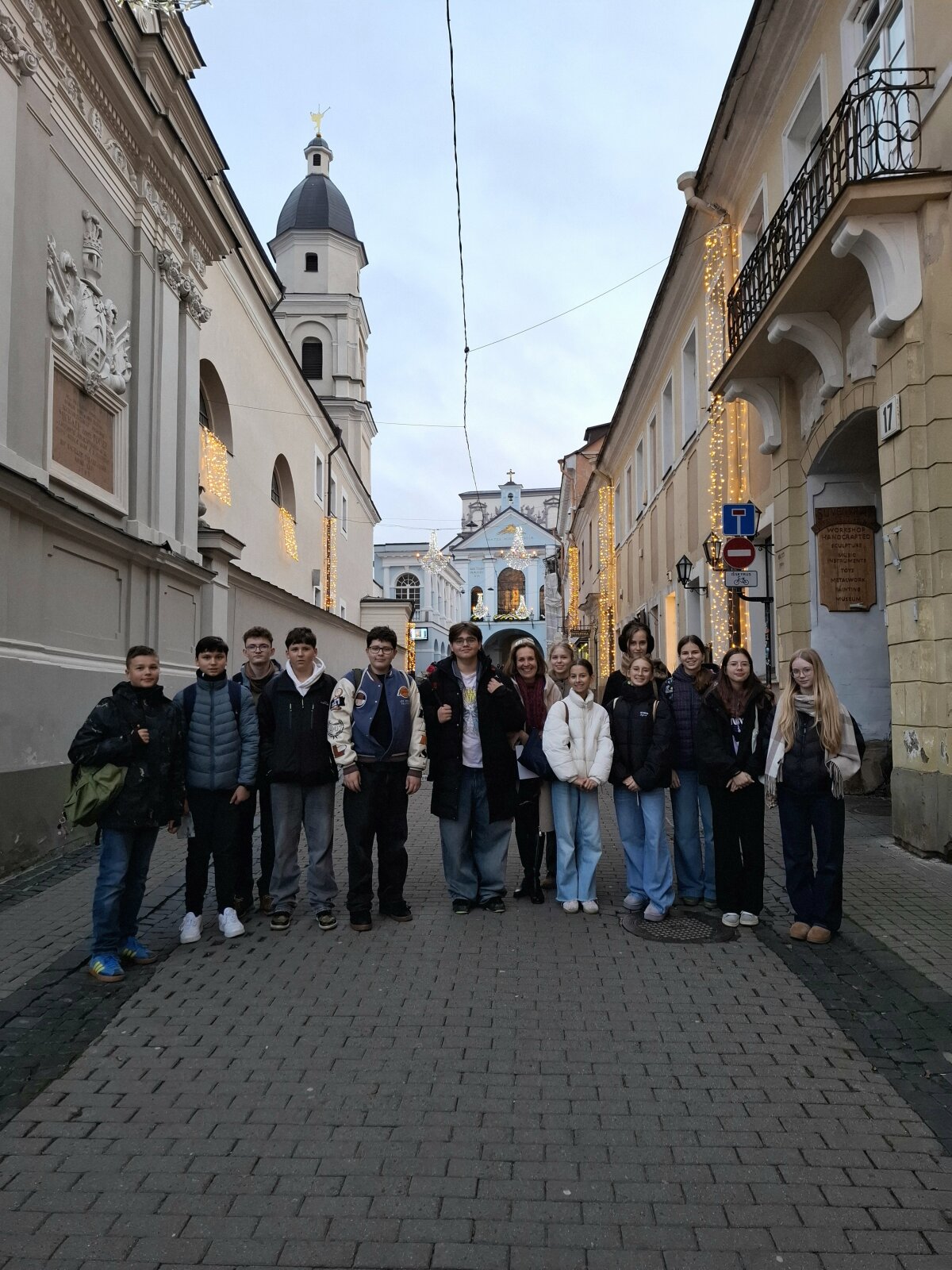 2025 m. lapkričio 13 d. 7al, 7c, 7d klasių mokiniai dalyvavo Aušros Vartų Gailestingumo Dievo Motinos atlaidų programoje. Ji prasidėjo edukacija „Kosminis choras. Peizažai sakralinėje dailėje ir literatūroje" Bažnytinio paveldo muziejuje. Aplankę parodą kūrėme peizažus natūralios kilmės dažais, maišydami juos su natūraliais reagentais. Labiausiai stebino spalvų pokyčiai. Po šių atradimų skubėjome pas Aušros Vartų Švč. Mergelę Mariją Gailestingumo Motiną švęsti Šv. Mišias. Jose dalyvavo mokiniai ir mokytojai, atvykę iš įvairių Vilniaus arkivyskupijos vietų.