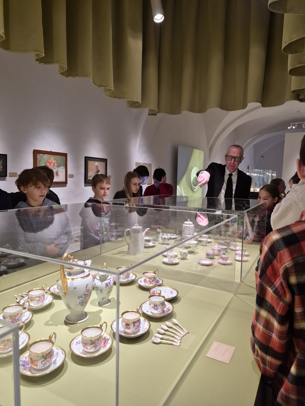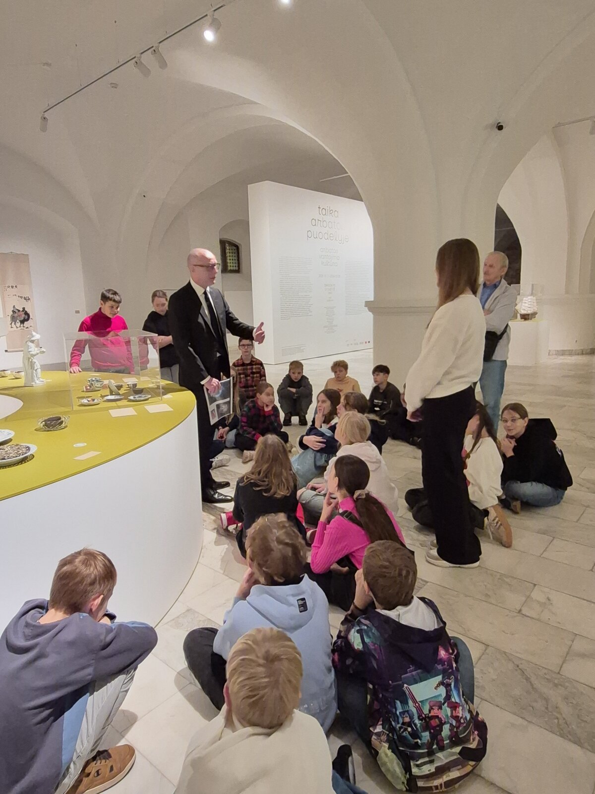 Lapkričio 11 dieną 5al klasės mokiniai, lydimi auklėtojos L.Petkevičienės ir technologijų mokytojo G. Pipiro apsilankė Taikomosios dailės ir dizaino muziejuje, kuriame mokiniai pagal kultūros paso programą dalyvavo edukaciniame užsiėmime „Porceliano grožis“. Pradžioje puikus gidas mokinius supažindino su porceliano „baltojo aukso“ atsiradimu Kinijoje 6 a.po.Kr., vėliau jo atvežimu į Europą XIII a., tai padarė žymus keliautojas Marco Polo. Gidas aprodė parodos „Taika arbatos puodelyje“ eksponatus, analizavo stilius, glazūrų rūšis, dekorų įvairovę. Po ekskursijos mokiniai turėjo edukacinį užsiėmimą, kurio metu dekoravo „baltojo aukso“ lėkštutes - sukūrė dekoratyvų spalvotą piešinį. Piešė ant lėkštutės su specialiais, tik porcelianui skirtais, spalvotais žymekliais, dekoravimą užbaigė lėkštutės kaitinimu (karštis užfiksuoja dažus). Kiekvienas mokinys lėkštutę susipakavo į eskizą ir parsinešė namo. Edukatorė džiaugėsi ir stebėjosi, kad buvo sukurta daug gražių piešinių ir jais dekoruotos lėkštutės. Užbaigus darbą, mokiniai lėkštutes išdėliojo ant balto lapo, apžiūrėjo, įvertino ir nusifotografavo. Kviečiame pasižiūrėti.