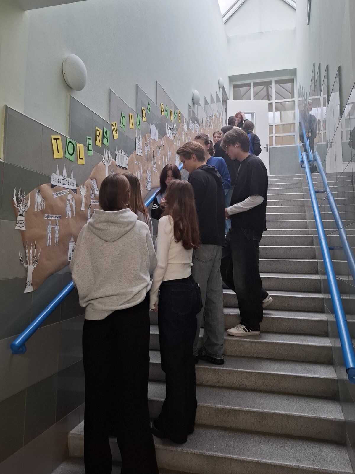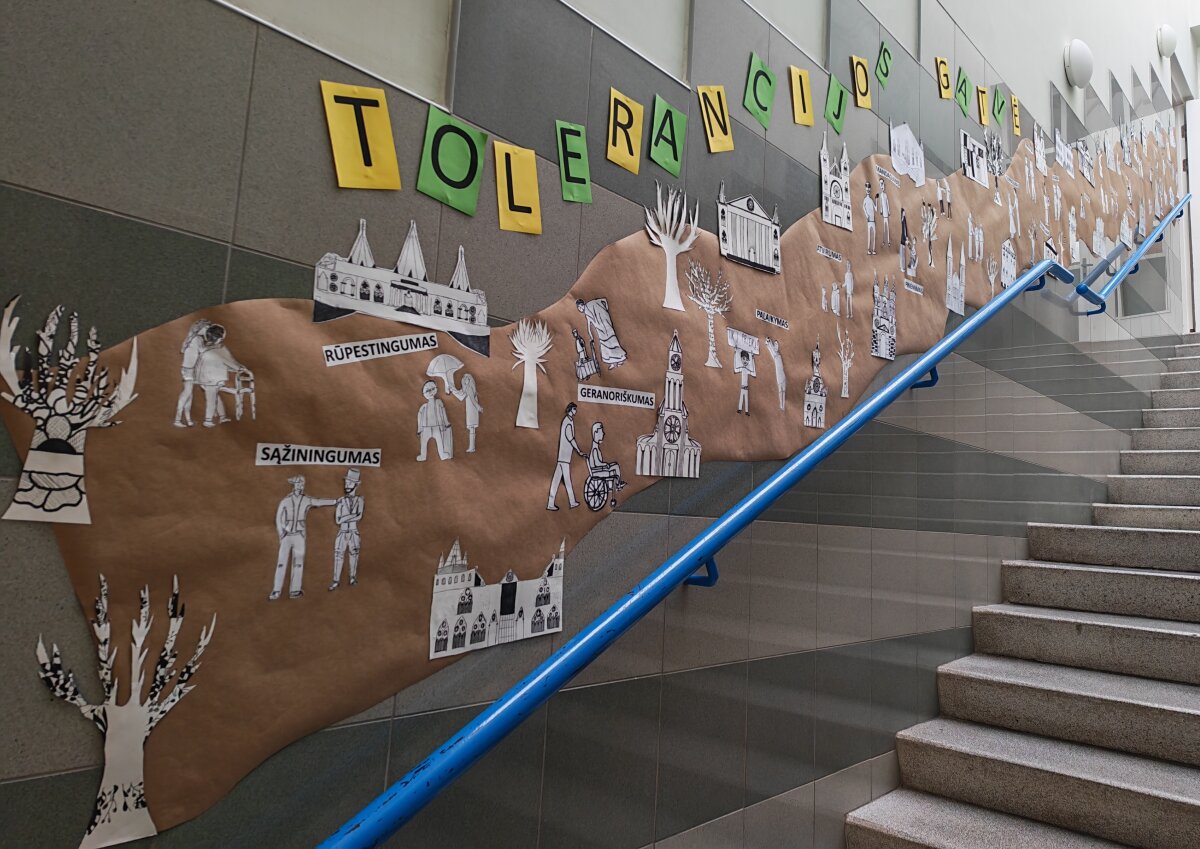 Kadangi šių metų tolerancijos simboliu buvo pasiūlyta tolerancijos gatvė, mokiniai ieškojo kuo daugiau galimų interpretacijų, atskleidžiančių tolerancijos apraiškas. Per dailės pamokas I-II gimnazijos klasių mokiniai, naudodami grafinę raišką ir pasirinkę tolerancijos raiškai būtiną savybę ir dorybę, kūrė savitas kompozicijas, siekdami bendruomenei įtaigiai perduoti socialinę žinutę apie toleranciją. Šie darbai eksponuojami gimnazijos erdvėse.