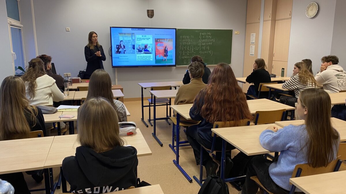 Džiaugiamės, kad mūsų gimnazija jungiasi prie iniciatyvos #EmpoweringGirls!, kuri skirta II–IV gimnazijos klasių mokiniams. Ši iniciatyva į gimnaziją pakvies atvykti antreprenerystės ir technologijų ambasadores, moteris profesionales, dirbančias skirtingų sektorių versluose, kuriančias įvairias inovacijas bei technologinius sprendimus. Jos pasidalins su mokiniais savo sėkmės istorijomis, patirtais iššūkiais, papasakos apie savo karjeros kelią technologijų srityje, technologijų ir verslumo kompetencijų svarbą sėkmingai karjerai. 2025 m. gruodžio 9 d. įvyko pirmasis vizitas – Kristina Mataitytė – teisininkė, atradusi technologijų sritį, dirbanti kompanijoje Orbi World.