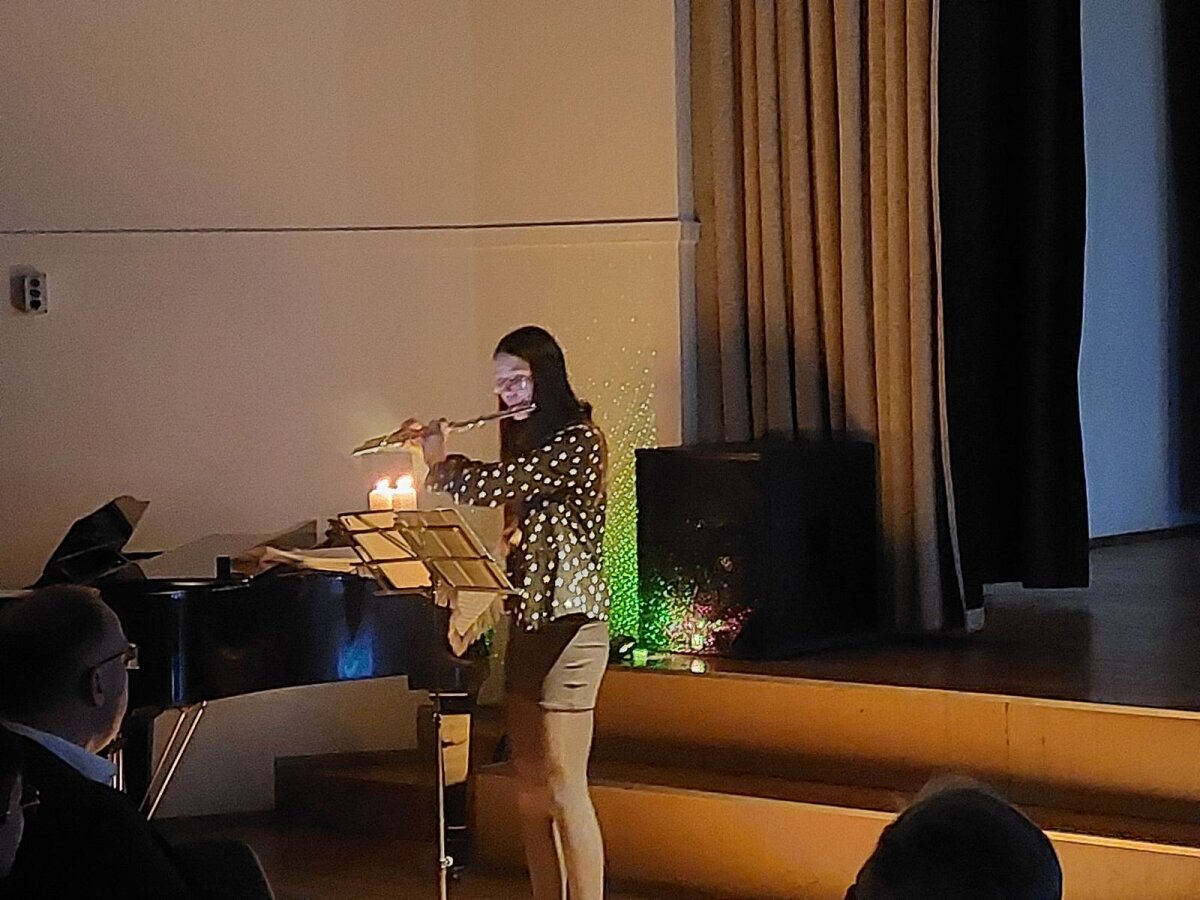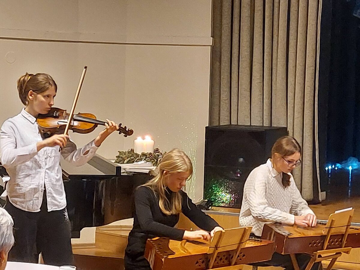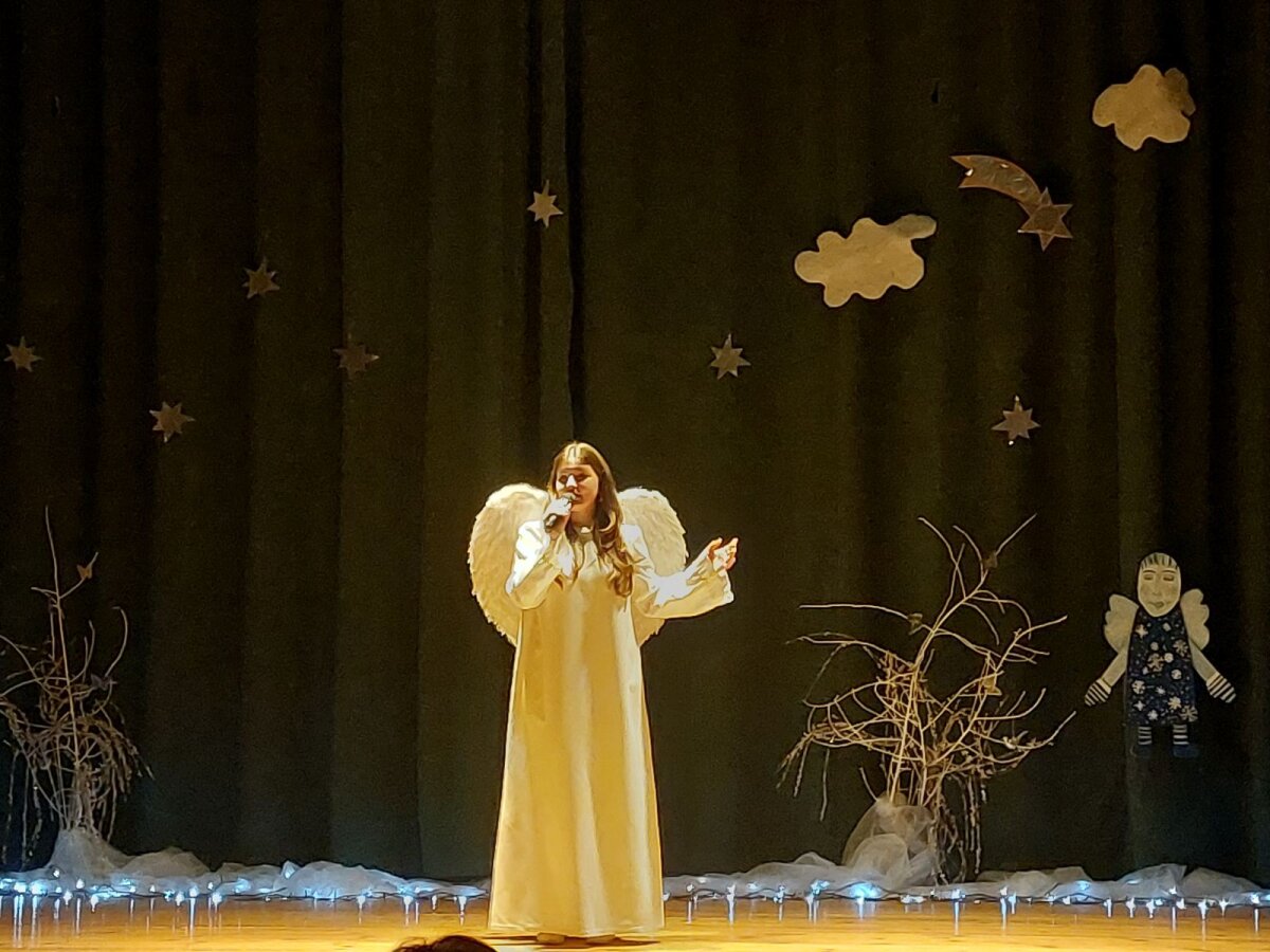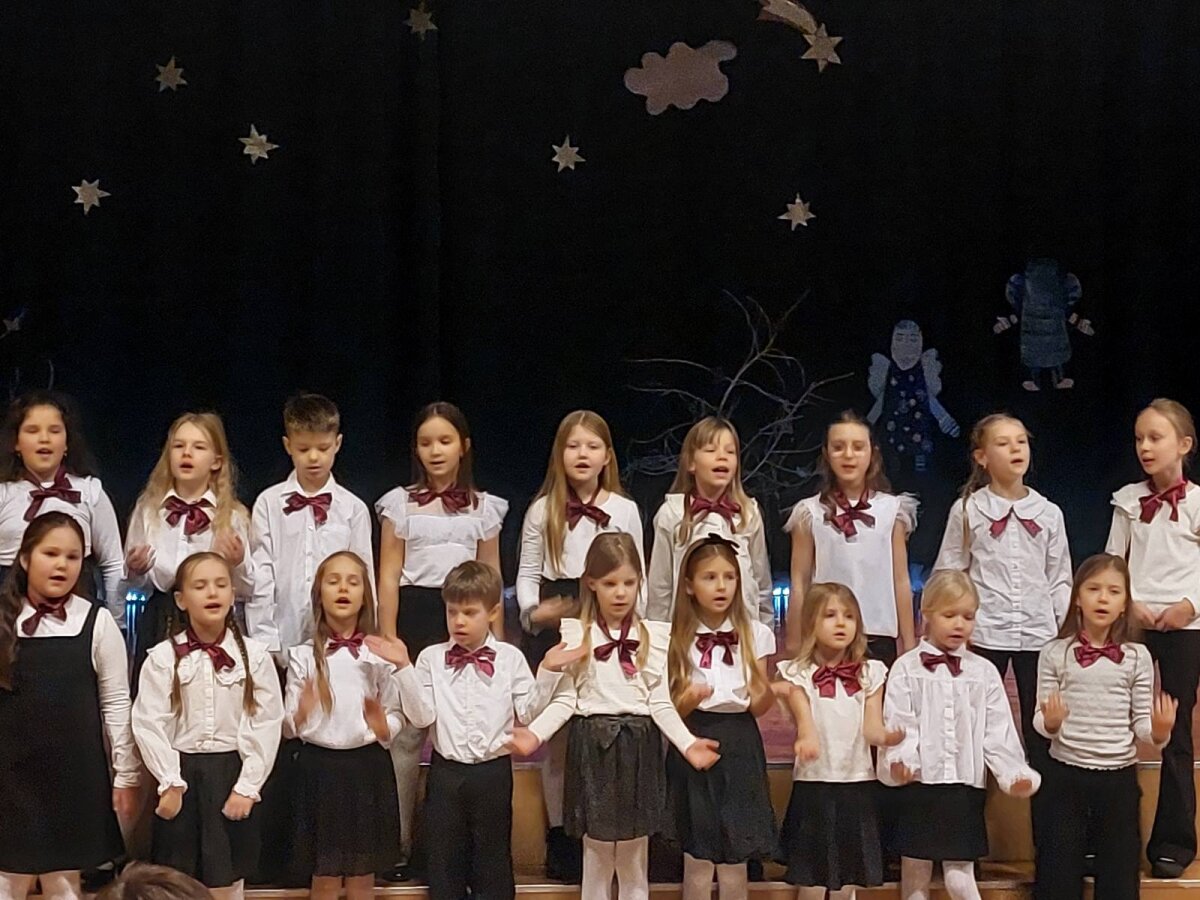 Tradicinė Kalėdų misterija gimnazijoje kasmet džiugina originaliomis meninėmis ir režisūrinėmis interpretacijomis. Šiųmetinės pradžią paskelbė dviejų mokytojų pučiamos daudytės ir joms atitariantis grupės berniukų ragų gausmas.