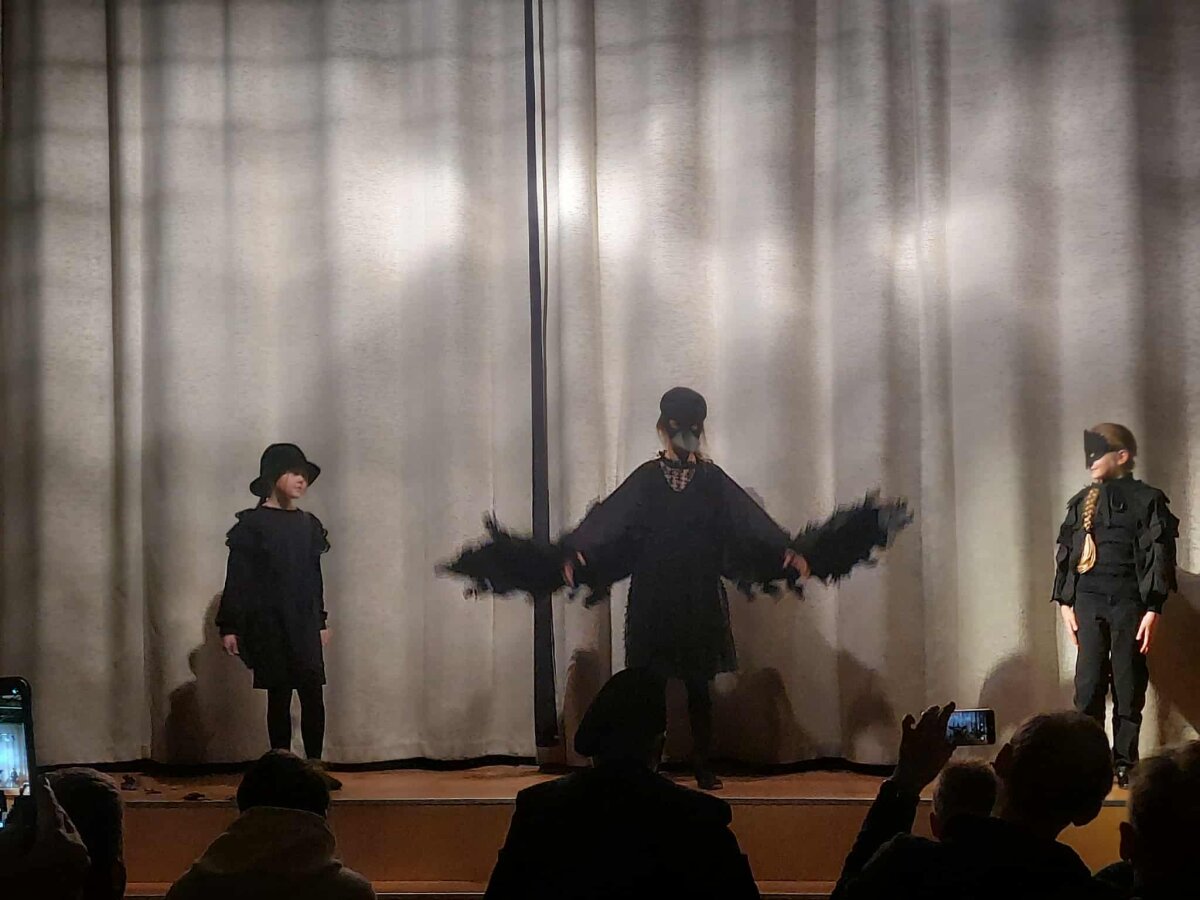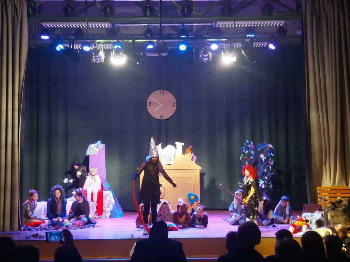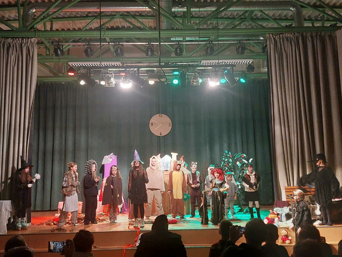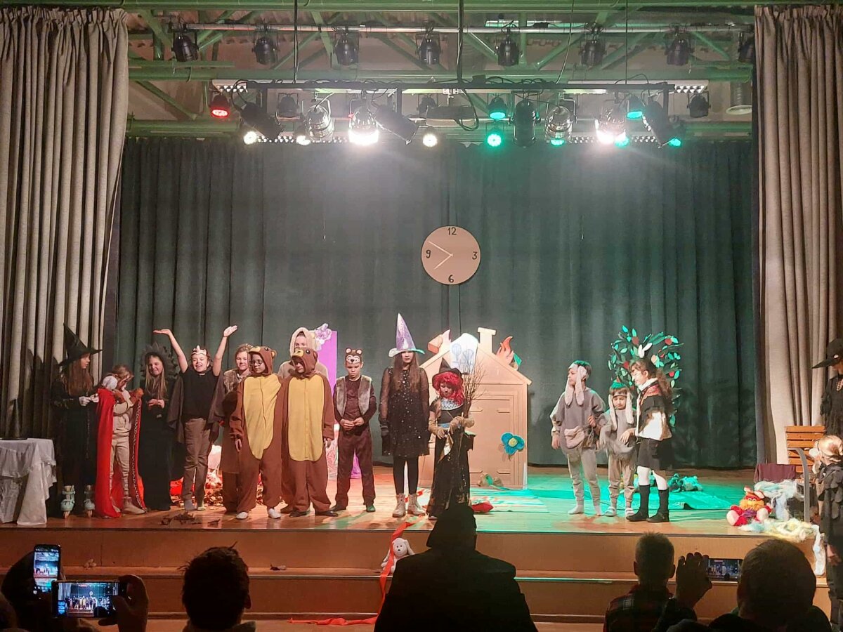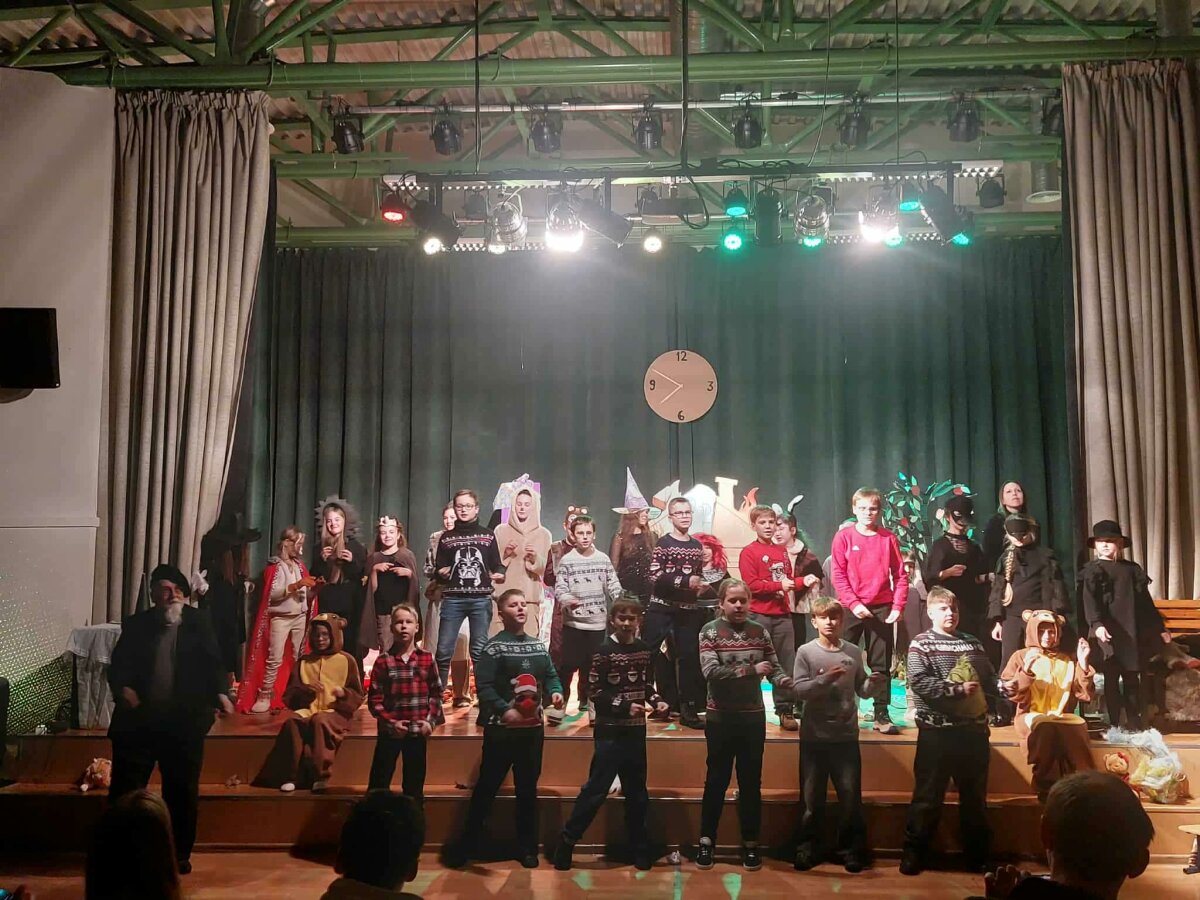 Šiais metais spektaklis „Užburtos Kalėdos“ užbūrė visus žiūrovus, nes scenoje, kaip ir dera per tokias šventes, kalbėjo, dainavo, šoko ir visaip siautėjo miško žvėreliai ir paukščiai, burtininkės ir kiti pasakų personažai, kas kaip gali rūpindamasis, kad Kalėdos ateitų laiku.
