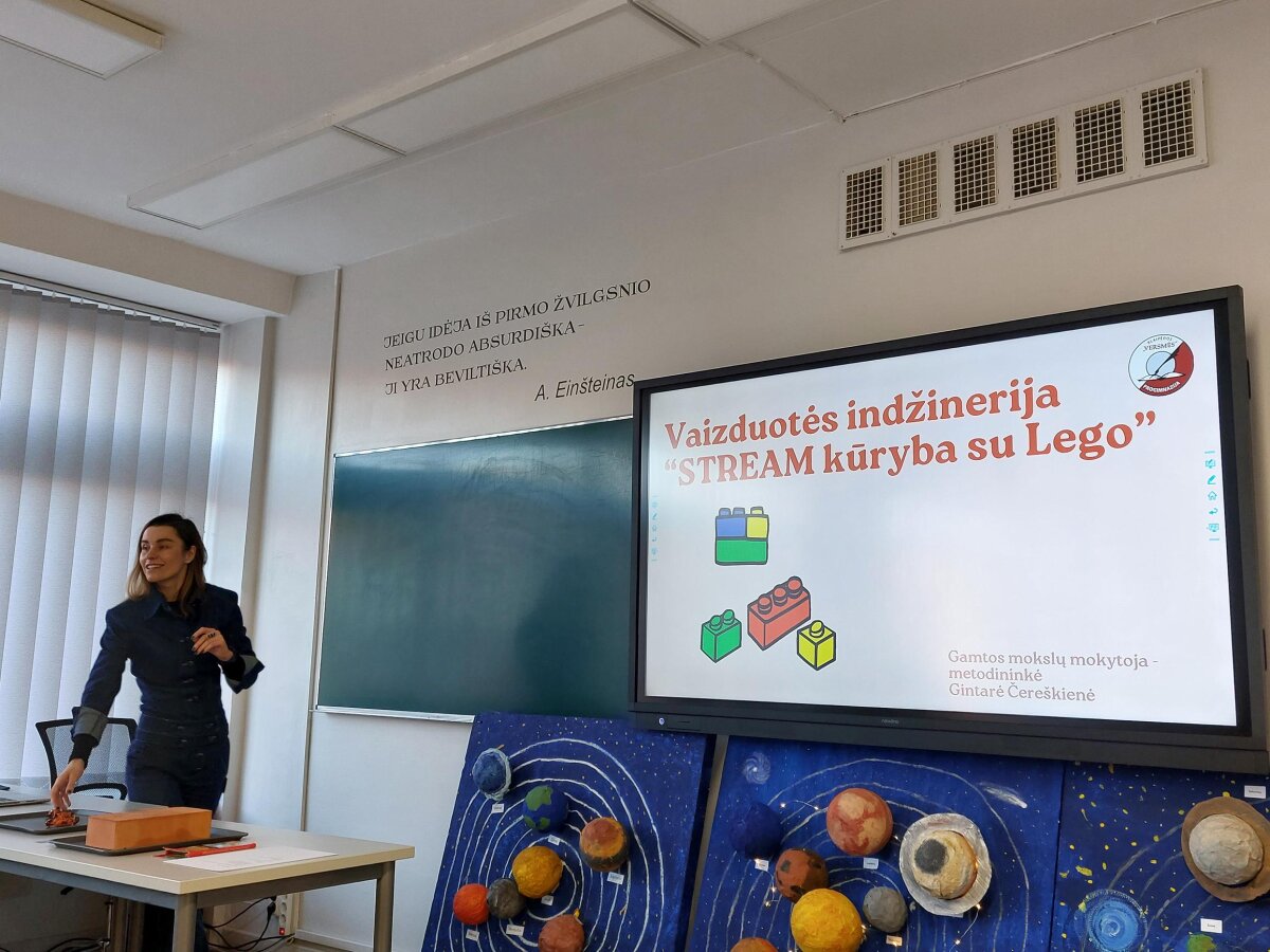 Mokytojai taip pat išbandė praktines veiklas įvairiose grupėse: kūrybiškumo, užsienio kalbų, molio laboratorijose, STEAM ir STREAM, Vedlių programos kūrybos klasėse.