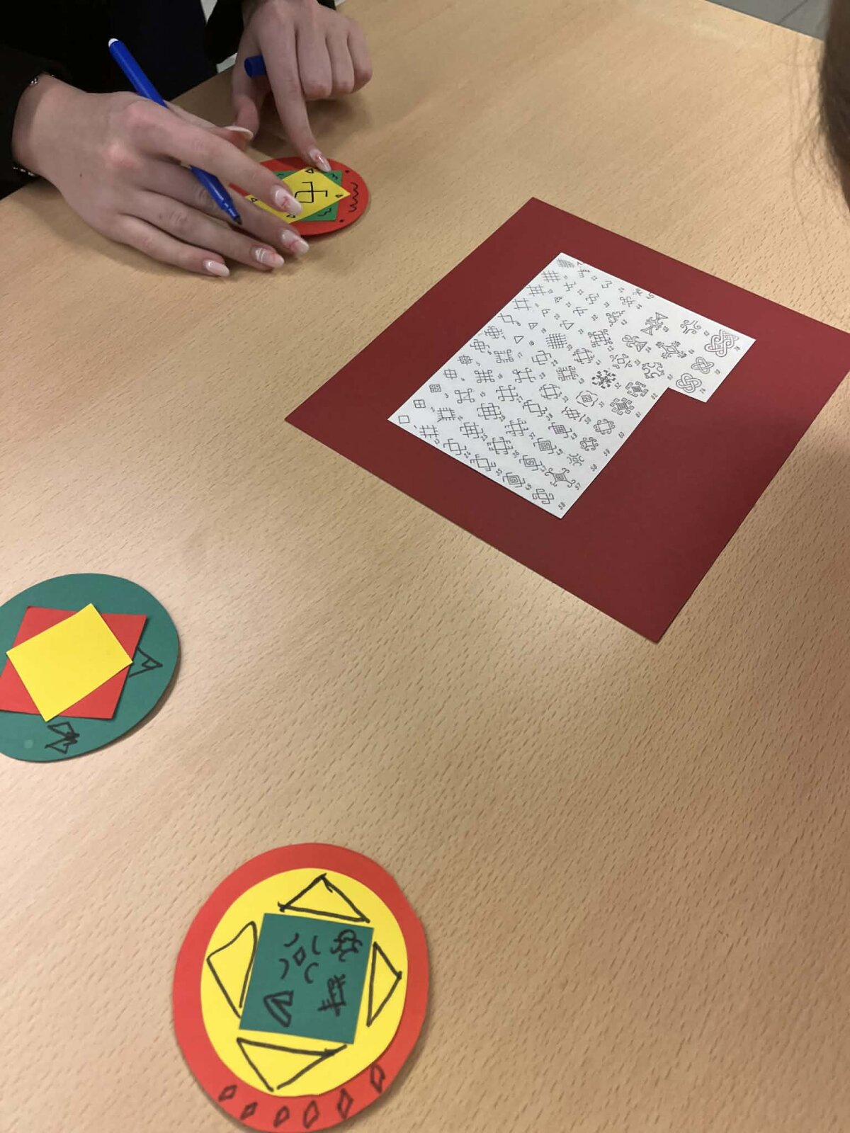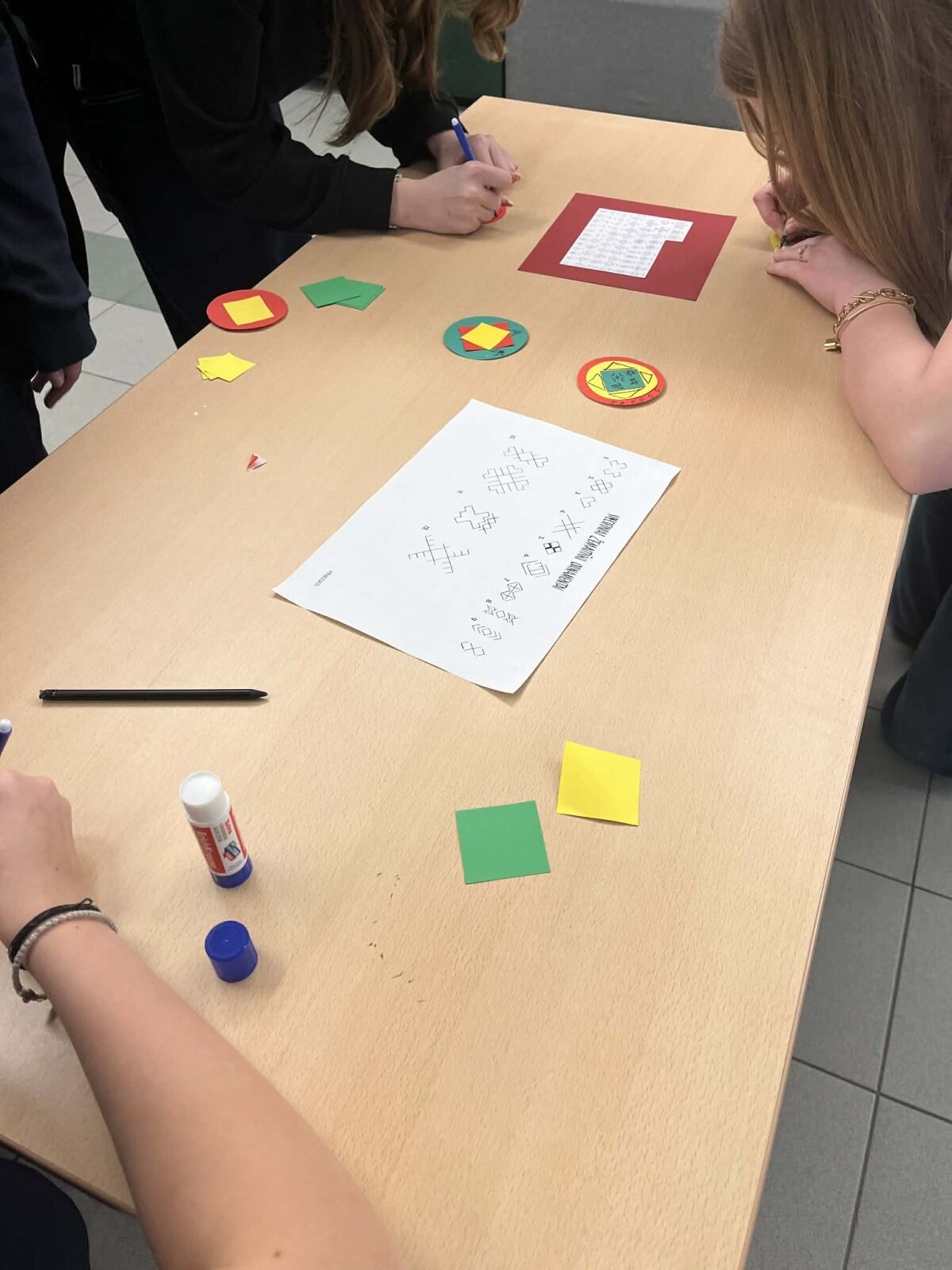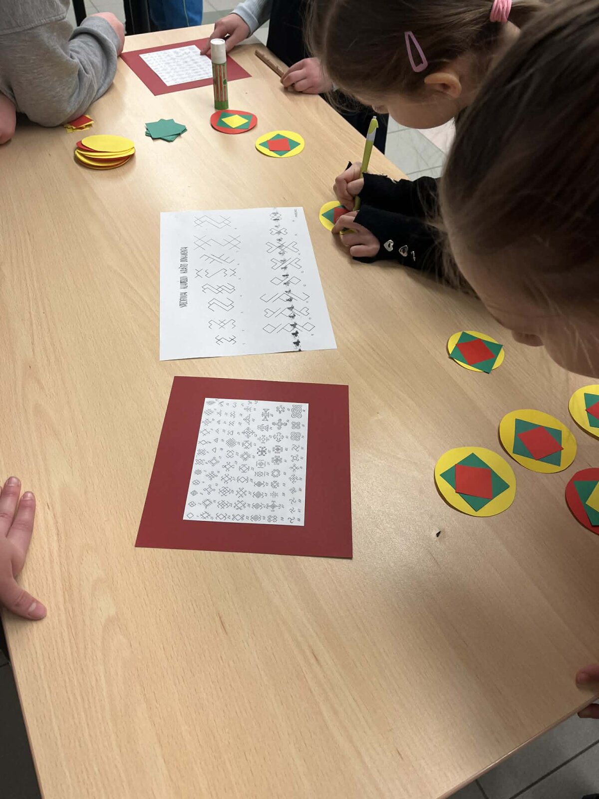 Trečiadienį pirmokai ir antrokai rekreacijoje įrengė kūrybinę tautinės atributikos dirbtuvę ir prisigamino trispalvių medalių, kuriais iš karto ir apsidovanojo, tokiu būdu gyvai papuošdami visą gimnaziją.