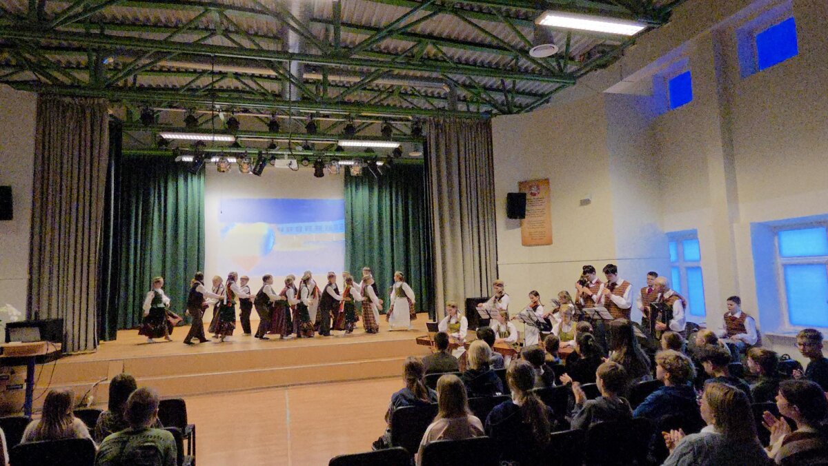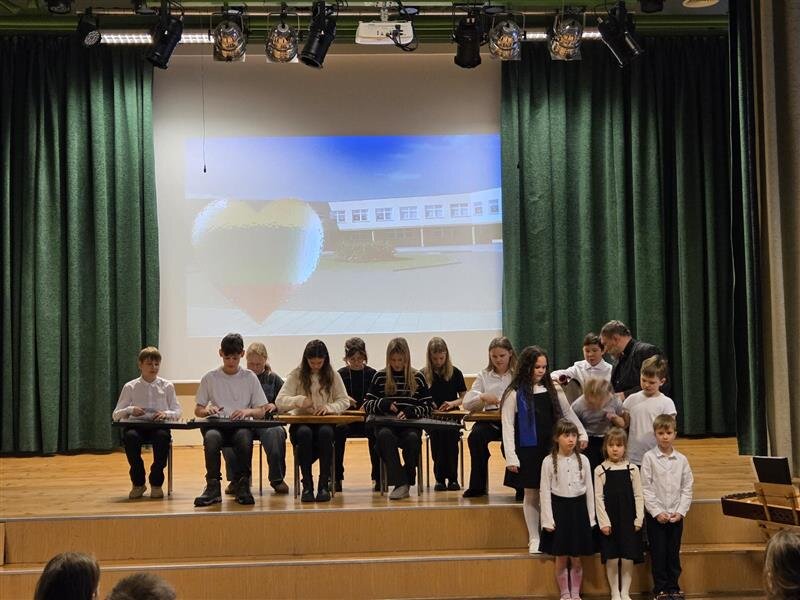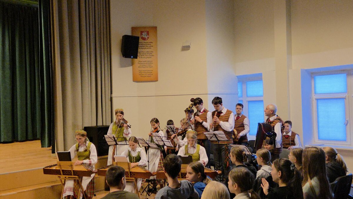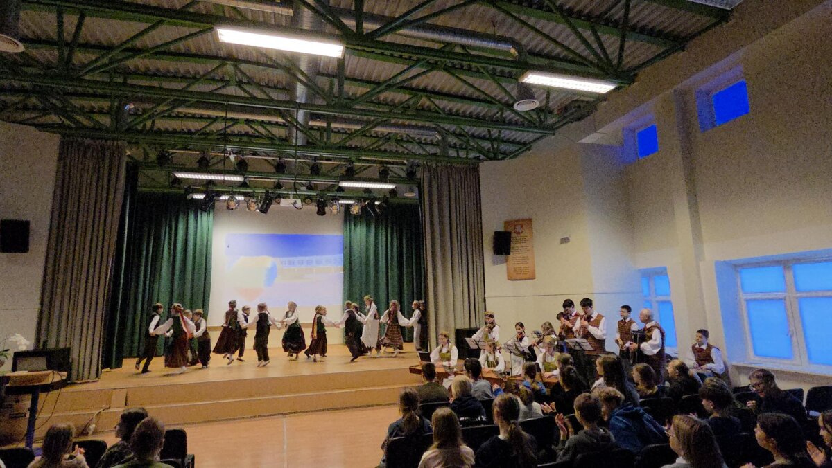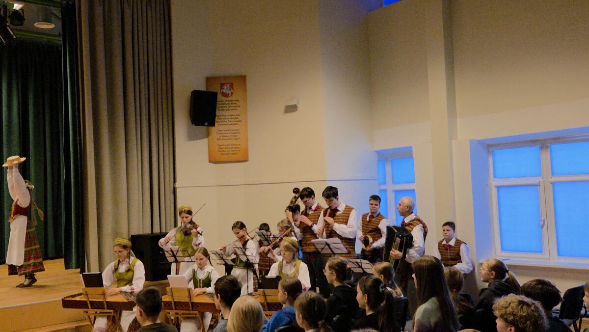 Ketvirtadienį gimnazijos meno kolektyvai ir solistai užtvindė salę dviem koncertinėmis bangomis, o šios gaivino trečiokų, ketvirtokų ir penktokų tautinius jausmus.