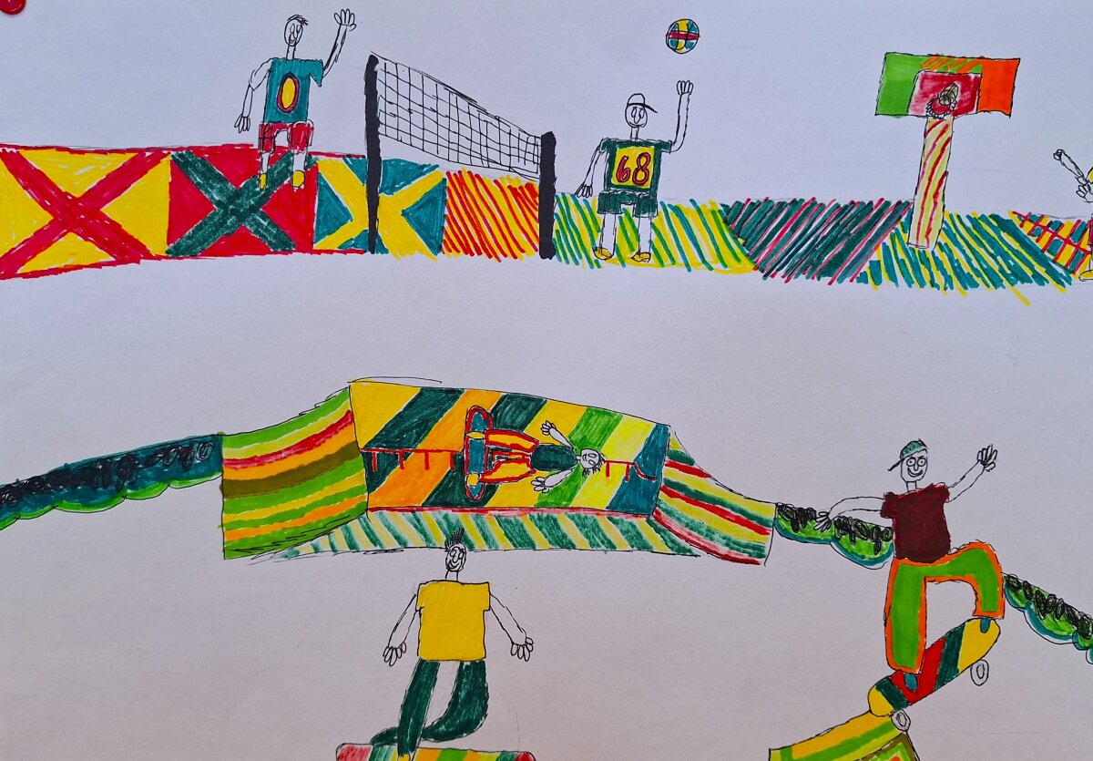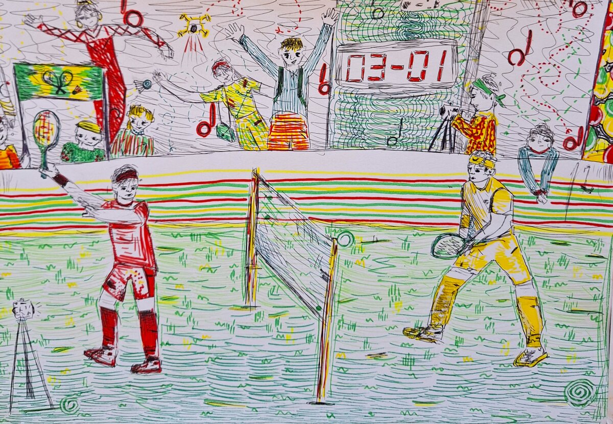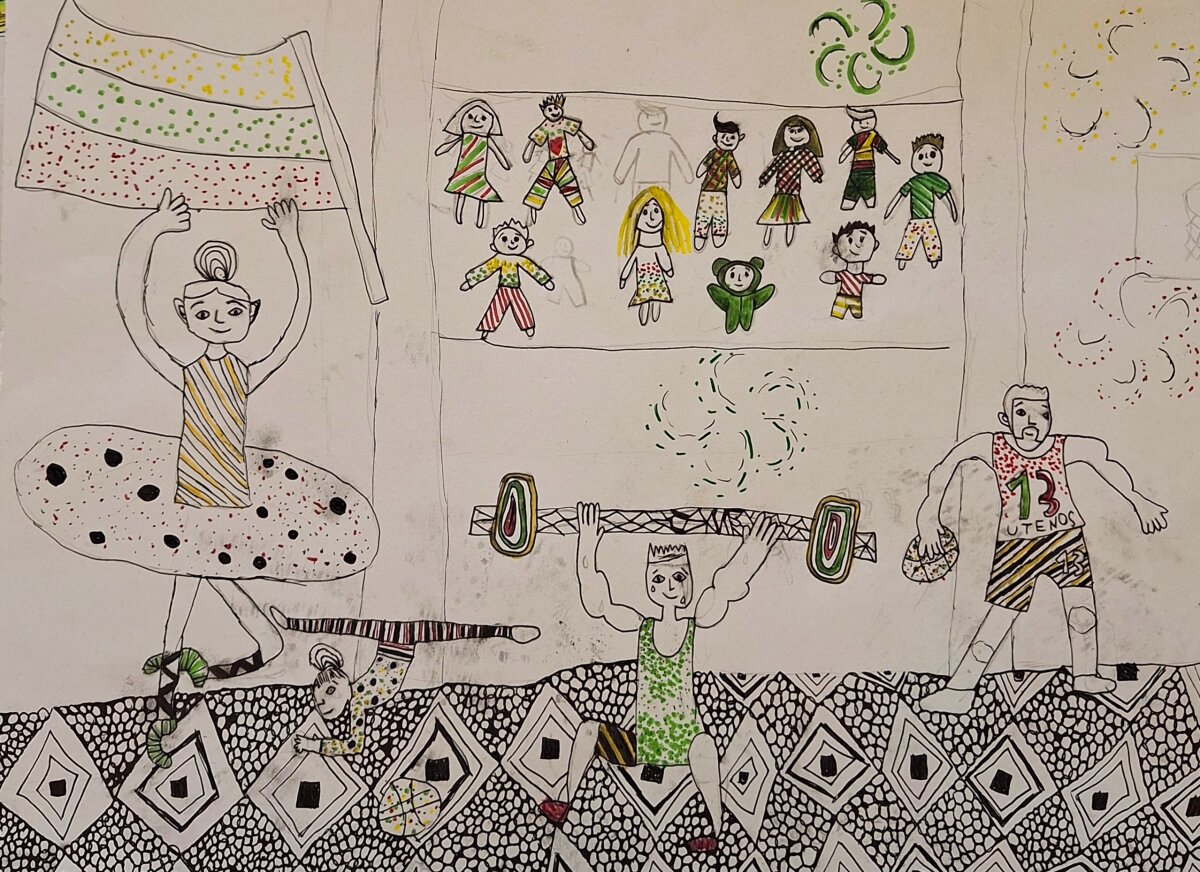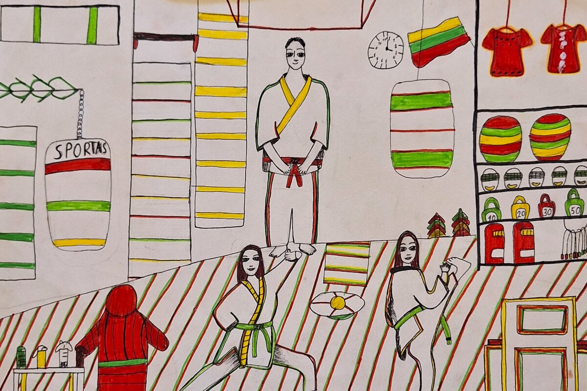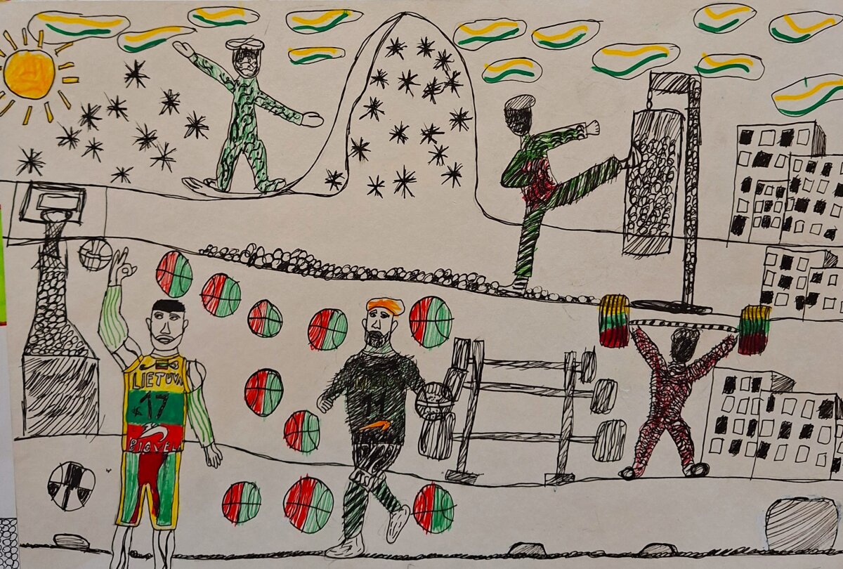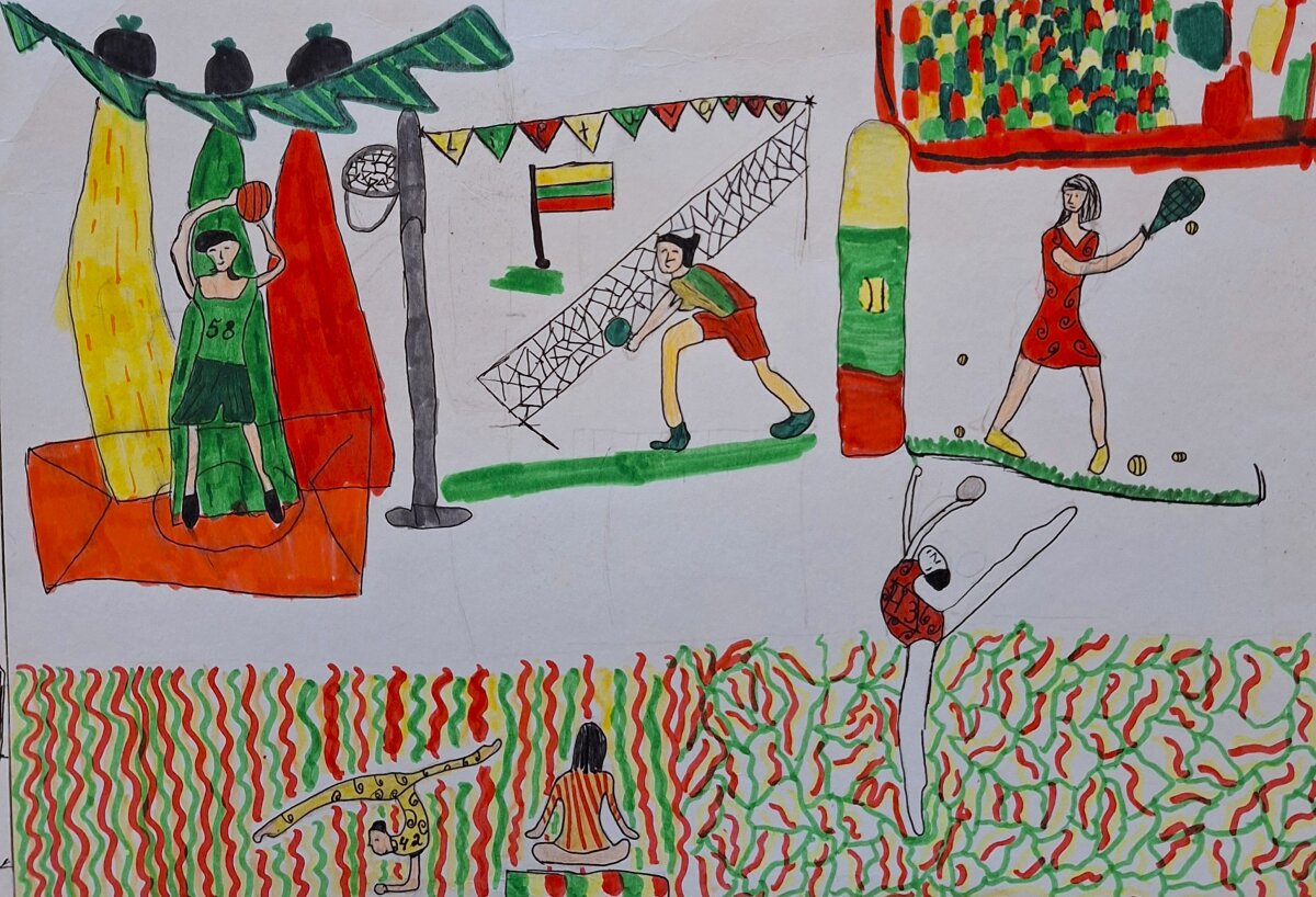 Dailės klasių mokiniai (1AD, 2AD, 3AD, 3BD ir 4AD) per dailės pamokas nupiešė originalių kompozicijų apie save ir mėgstamas sporto šakas, mokėsi vaizduoti sportuojančių žmonių judesius. Savo kūrybines idėjas pradinukai perteikė įvairiais linijų raštais, papildė juos Lietuvos valstybės vėliavos spalvomis. Paroda eksponuojama I a. rekreacijoje šalia pradinių klasių kabinetų. Maloniai kviečiame ją pažiūrėti.