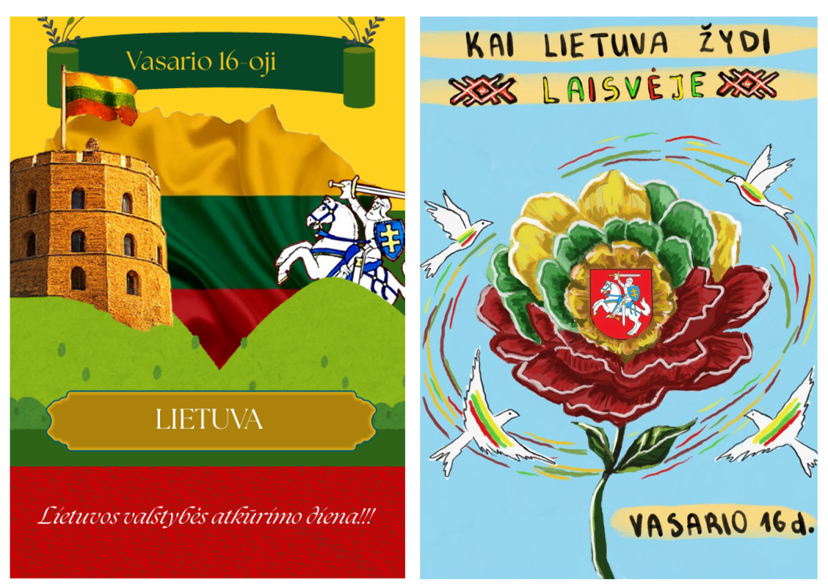 1918 m. vasario 16 d. Lietuva atkūrė savo valstybingumą. Minėdami 108-ąsias šio istorinio įvykio metines, III–IV gimnazijos klasių mokiniai dailės pamokose kūrė proginius atvirukus. Atliekant kūrybinę užduotį buvo laikomasi oficialių Lietuvos valstybės simbolių spalvų, o kompozicijose galėjo būti naudojami ir istoriniai nacionaliniai ženklai.