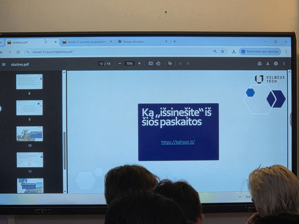 Paskaitos pabaigoje mokiniai įtvirtino žinias dalyvaudami interaktyvioje „Kahoot“ viktorinoje. Geriausiai pasirodę dalyviai buvo apdovanoti VILNIUS TECH prizais.