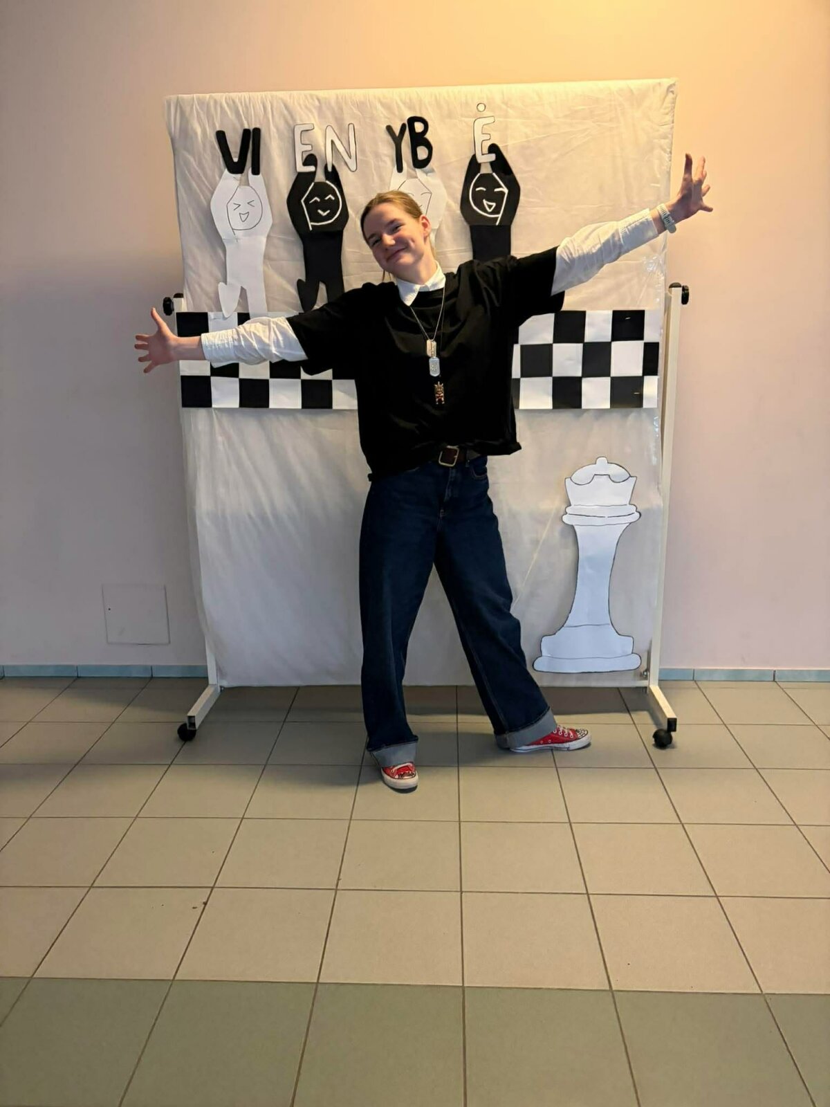 Visą savaitę prie bibliotekos stovėjusi foto sienelė tapo viena populiariausių veiklų – čia mokiniai kūrybiškai įamžino Spalvų savaitės akimirkas.