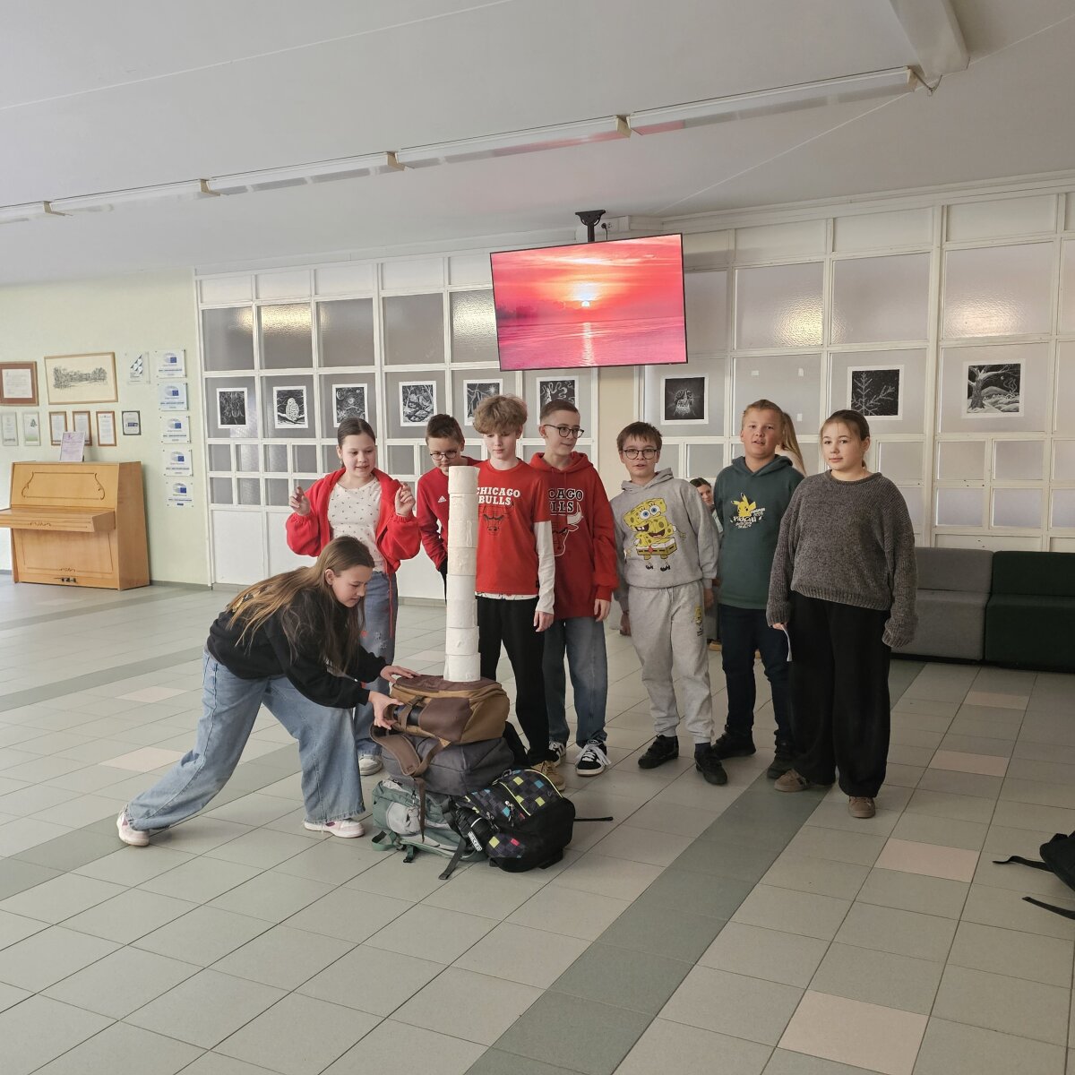 Ketvirtadienį (raudona) netrūko energijos ir drąsos. 5–8 klasių mokiniai dalyvavo komandiniame iššūkyje „Klasės bokštas“.