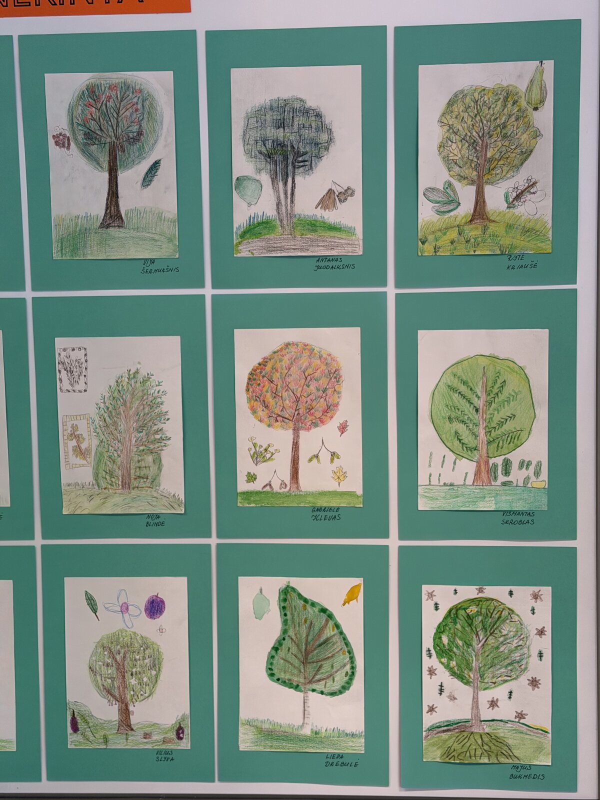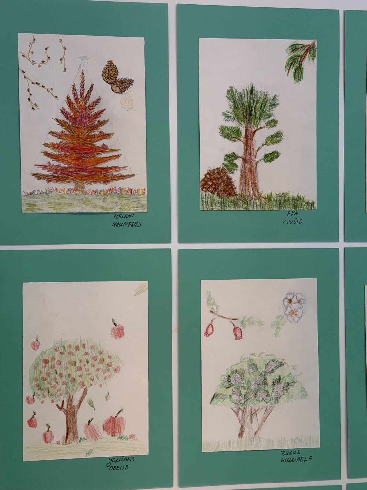 Projektinė veikla buvo integruota ir su dailės raiškos pamokomis – mokiniai piešė pasirinktus medžius, stengėsi atvaizduoti jų formas, spalvas, žiedus, sėklas ar vaisius.